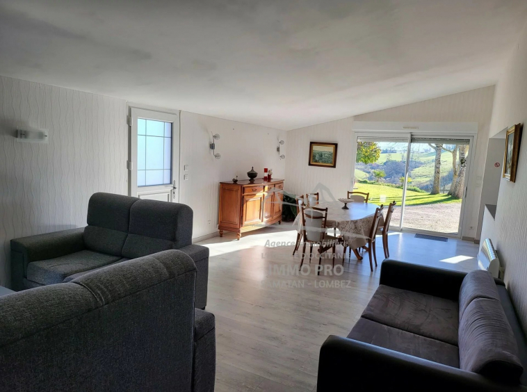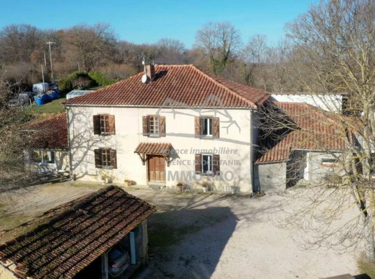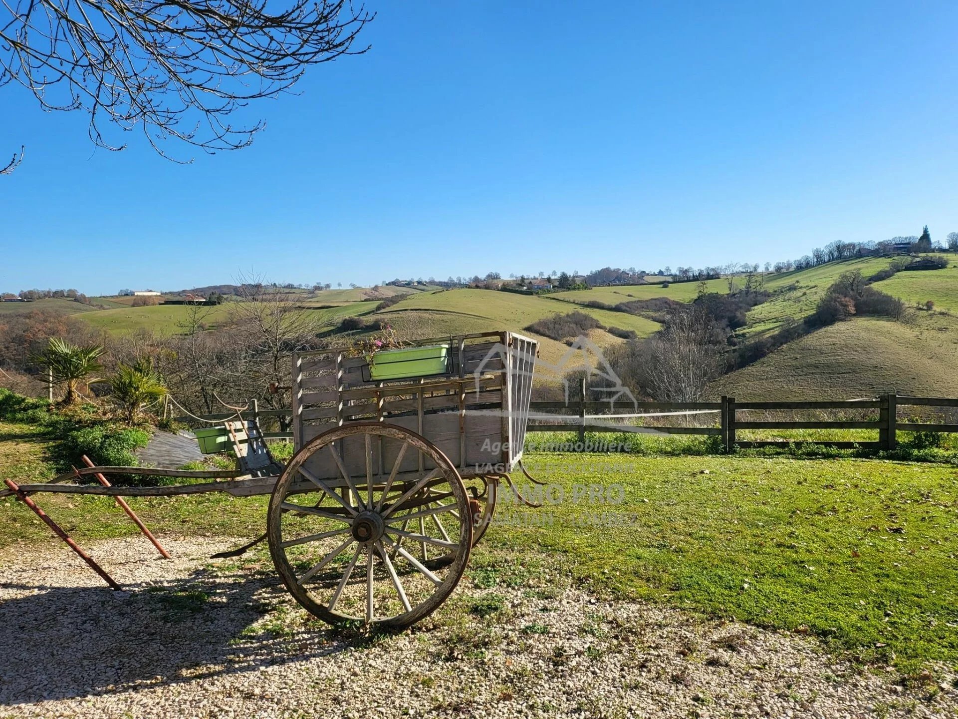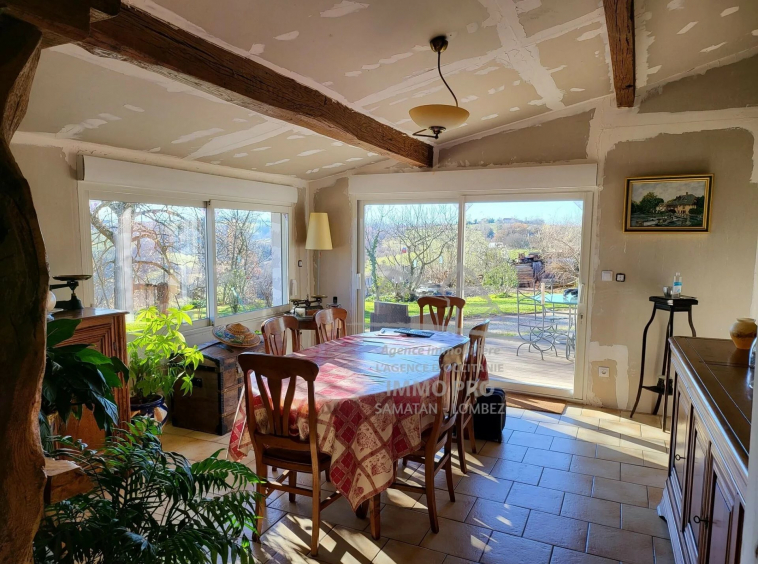 Located 15 minutes away from L’Isle-en-Dodon and all its amenities, in a dominant position on approximately 4.5 hectares with an exceptional view on the Pyrenees, House of approximately 160 m² and adjoining gîte of approximately 110 m².