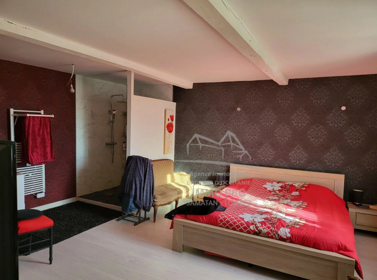 IN THE MAIN HOUSE: Entrance, living room with wood stove, semi-open kitchen onto dining-room, pantry-cellar, laundry room, 1 ensuite (bedroom with shower room and wc); Upstairs, 2 bedrooms, including a suite with shower and wc.