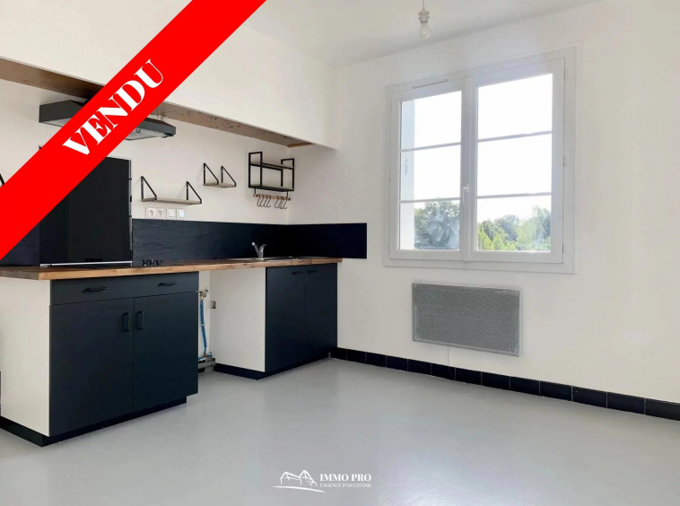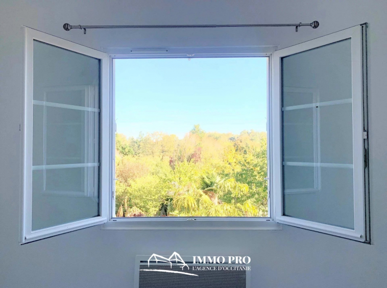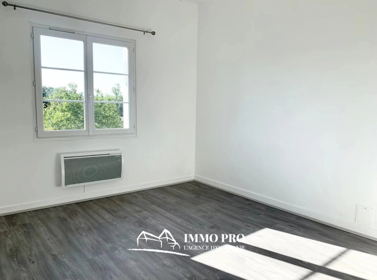 T3 RENOVATED on the ground floor of 75 m² including a large entrance hall, separate kitchen, living room with old flooring, 2 bedrooms, bathroom, toilet.