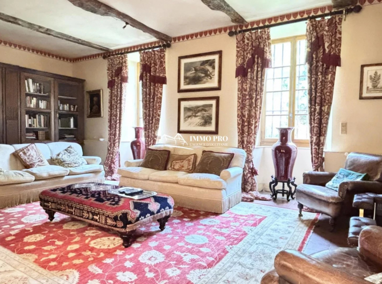 Nestled in a charming village in the Gers region, this 18th-century château appears untouched by time, offering an exceptional living environment. Steeped in character and authenticity, the property boasts approximately 400m² of living space, along with stunning outbuildings and a beautifully landscaped park of over 7.9 hectares.