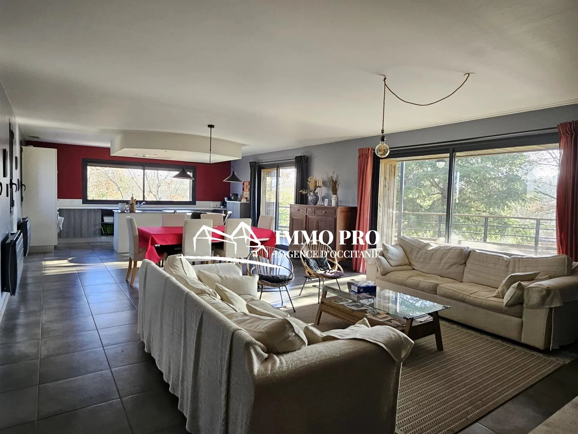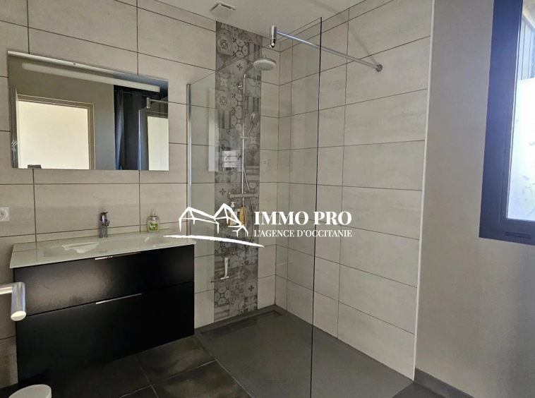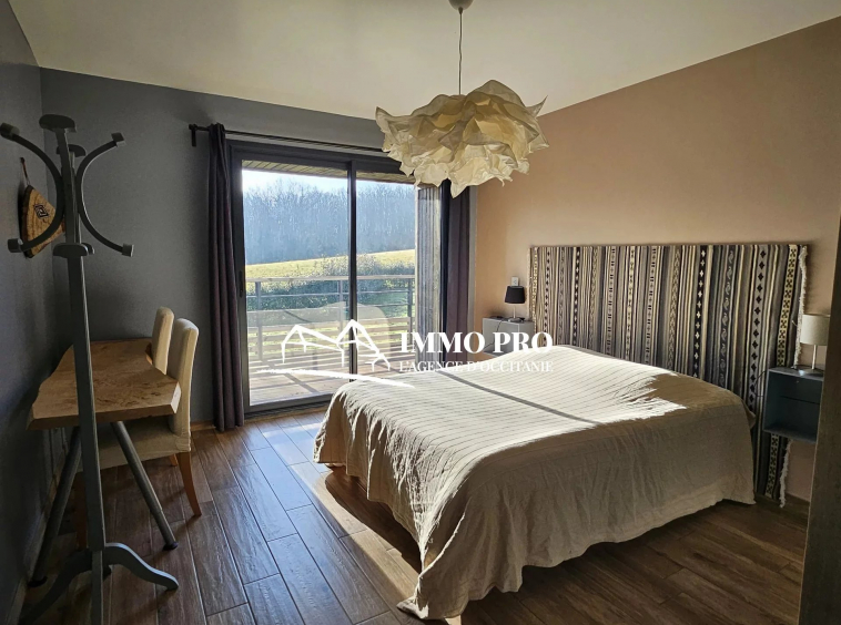 5 minutes from schools and shops, 15 minutes from St Lys and 20 minutes from L’Isle Jourdain, 5 minutes from schools and shops, 15 minutes from St Lys, 20 minutes from L’Isle Jourdain, and 40 minutes from Toulouse, contemporary VILLA from 2016 of approximately 125m² of living space with a spacious and bright living room of more than 55m², fully-equipped kitchen opening onto the dining room and living room (wood stove), 3 bedrooms, bathroom, separate toilet. Each room opens onto the continuous terrace, part of which is sheltered. Basement of 90m².