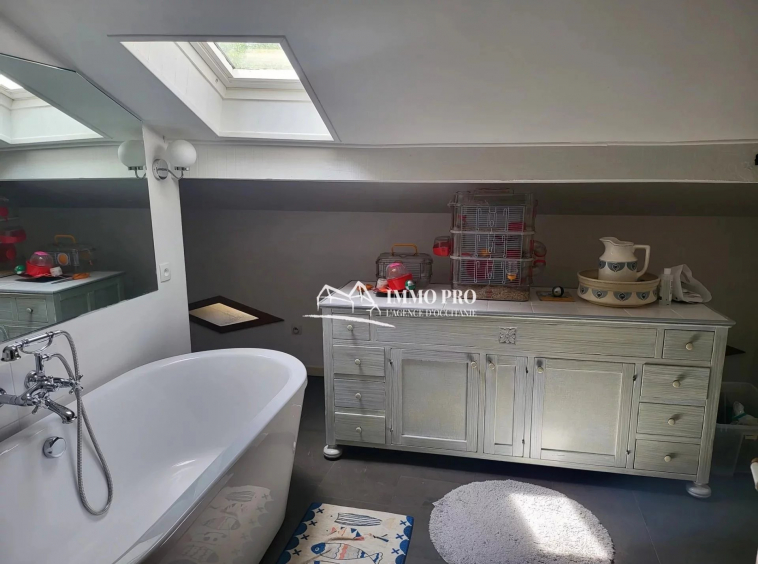 On the ground floor, central hallway, 1st living room and its fireplace, a living-dining room and its wine cellar, lovely fitted kitchen, pantry/laundry room, office, and a beautiful space of 50m² to be used as an office, a gym or an independent studio. Upstairs, landing, 4 bedrooms including 2 suites – parental suite (bedroom, bathroom with toilet and dressing room), and second suite (bedroom, shower room and dressing room), third bathroom and separate toilet.