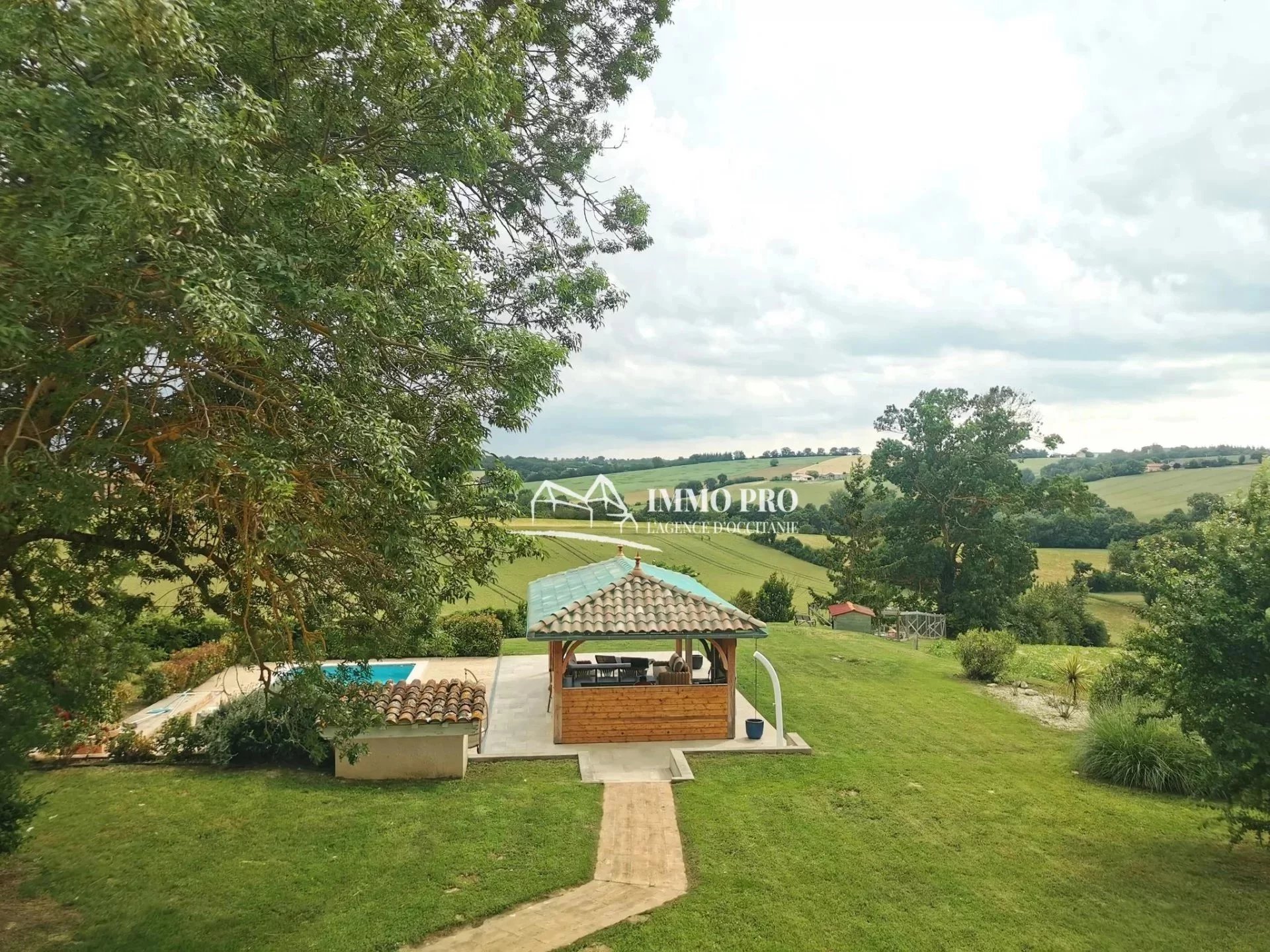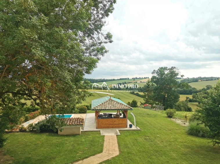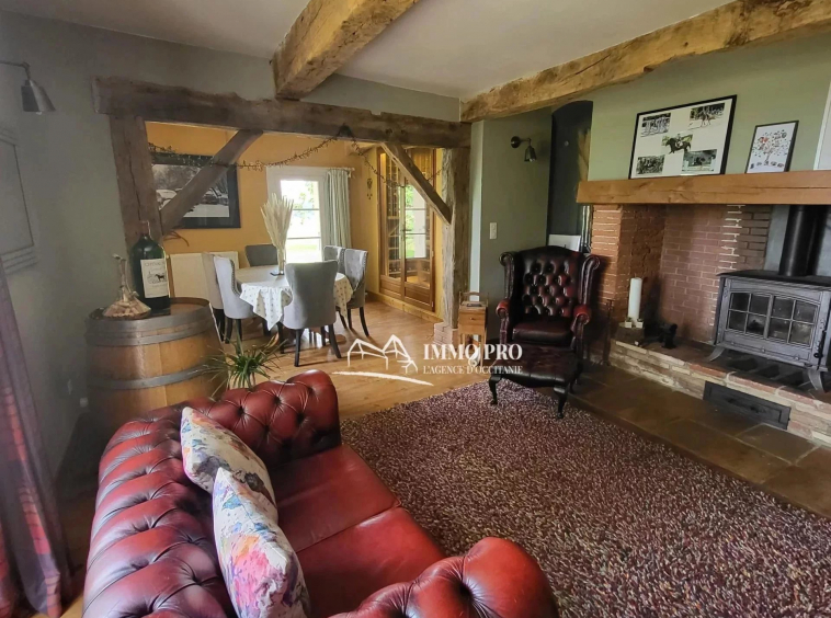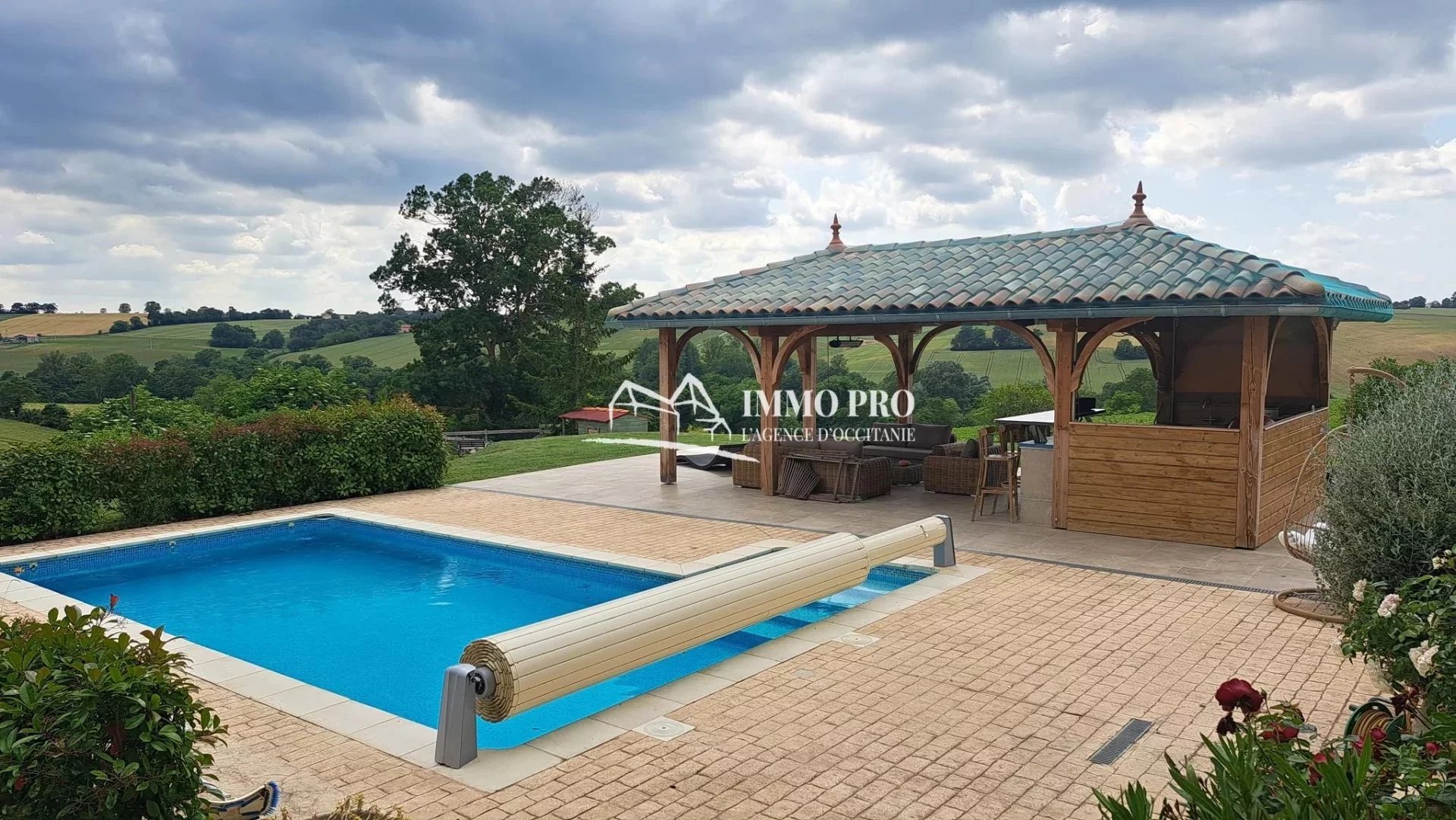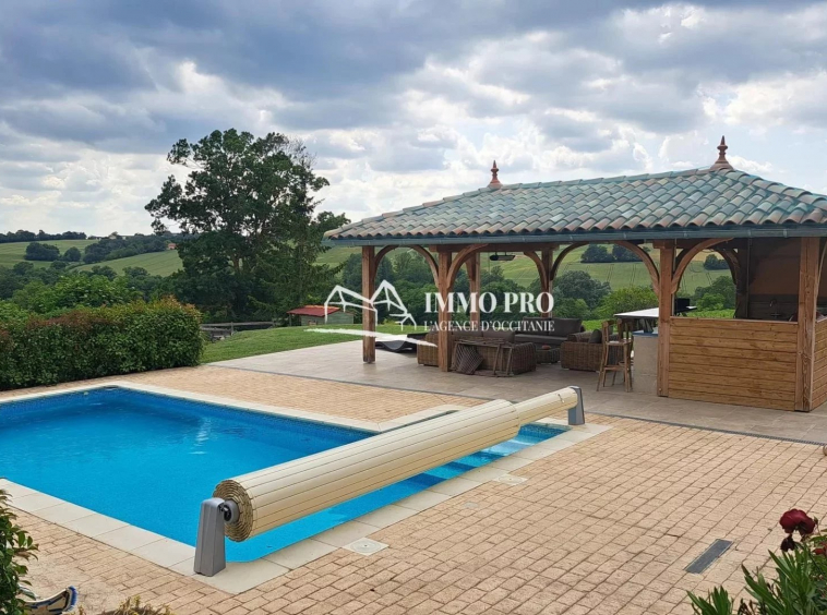 10mn from L’Isle Jourdain and 30mn from Toulouse Airport, Property consisting of a renovated house of approximately 270m² of living space, its adjoining covered terrace and a BEAUTIFUL RELAXATION AREA – secure SWIMMING POOL and its POOL-HOUSE AND SUMMER KITCHEN. The location is beautiful. CALM and QUIETNESS GUARANTEED.