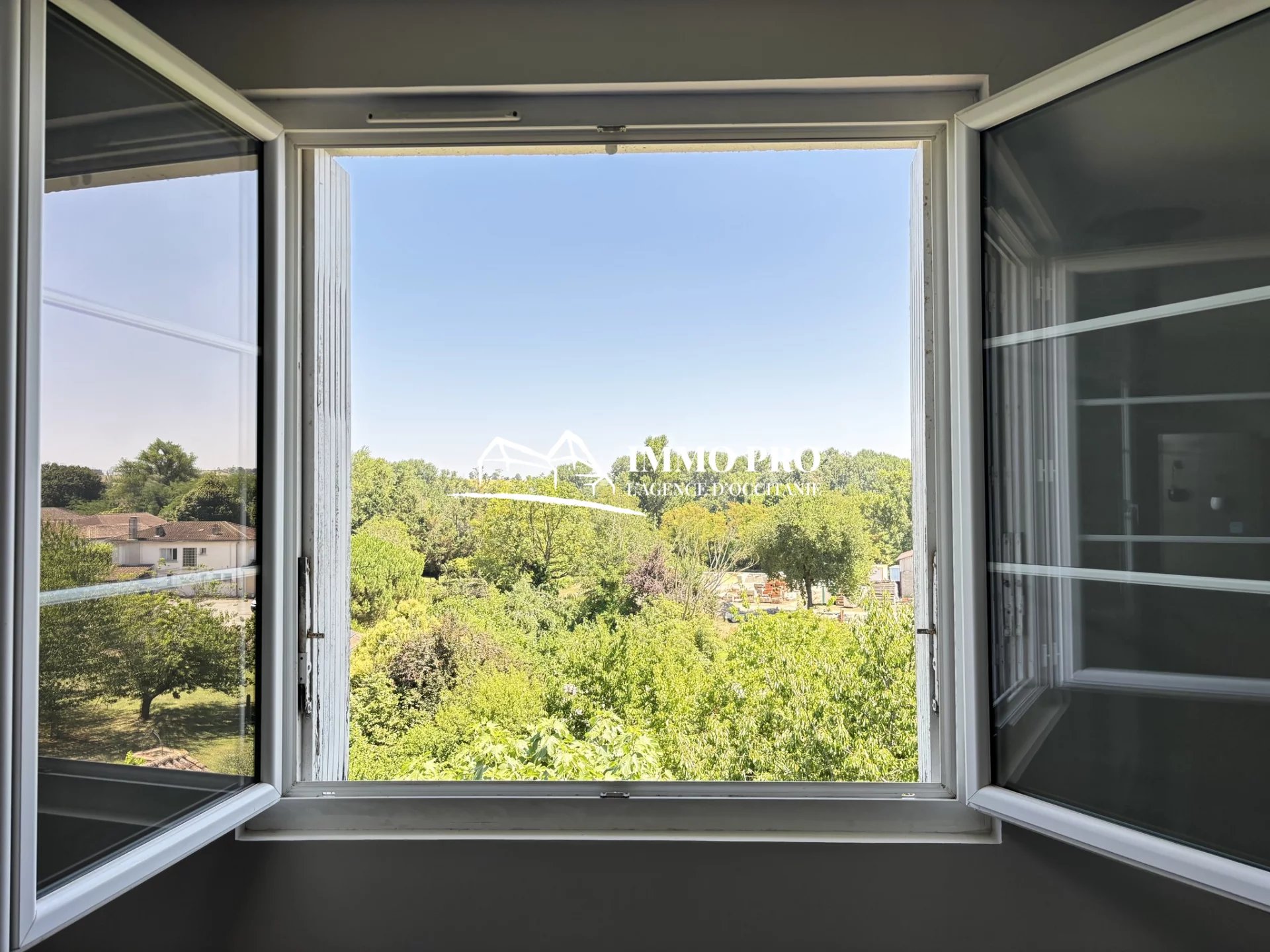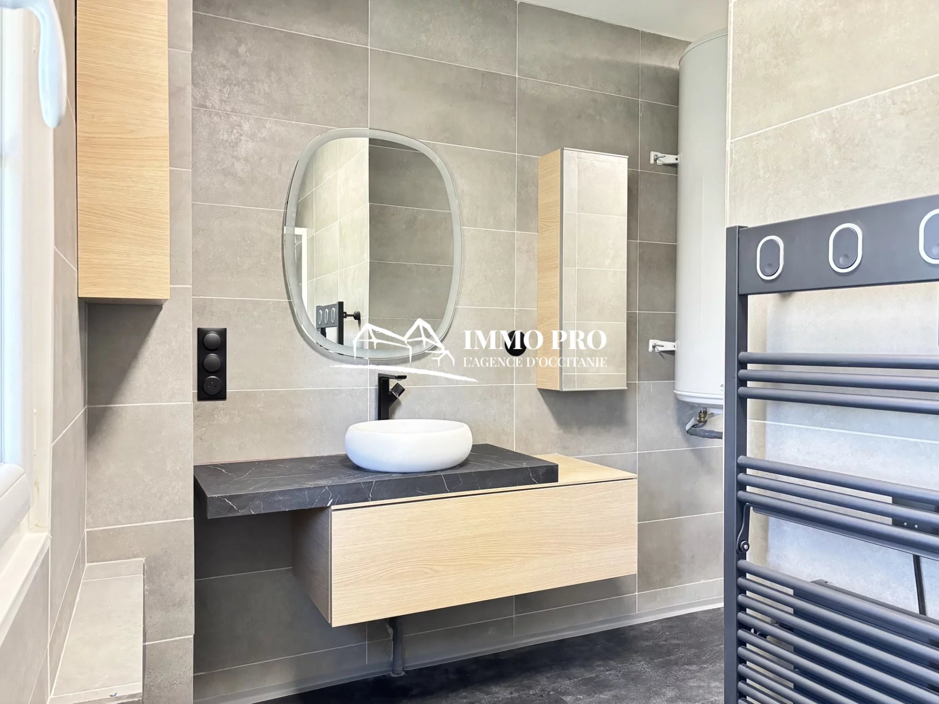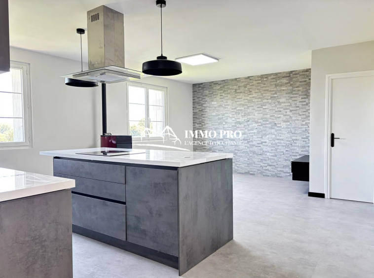 Completely renovated 81.5 m² apartment featuring a spacious living room with pellet stove, open-plan kitchen, 3 bedrooms (one with a walk-in closet), a shower room with walk-in shower, and a separate toilet.