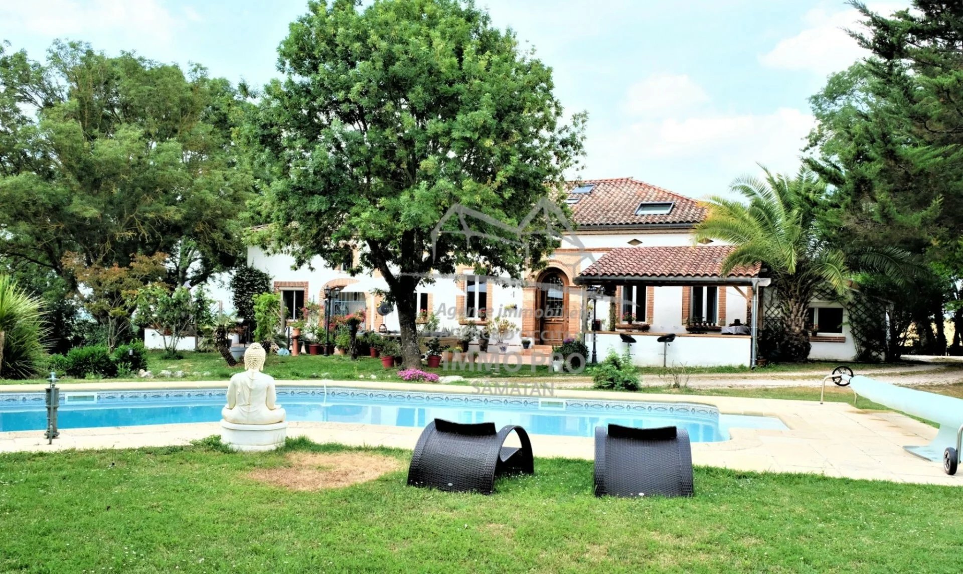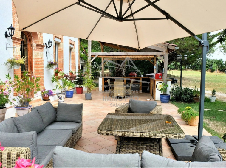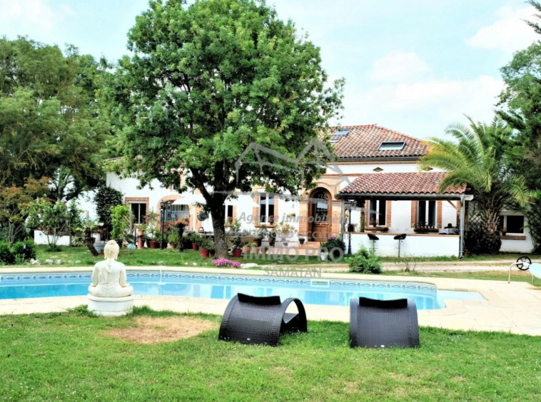 10 minutes from ISLE JOURDAIN, superb renovated Gascon house of approximately 340m² of living space and its beautiful TERRACE of 120m² + 2 very comfortable gîtes. 5,000m² of land (a well) with salt swimming pool heated by heat pump and beautiful hangar of approximately 120m². The living room of the main house (equipped kitchen open to dining room and living room) is more than 100m² with a large fireplace (polyflamme system), office, laundry room, master suite 40m² and upstairs 2 to 3 bedrooms and bathroom.