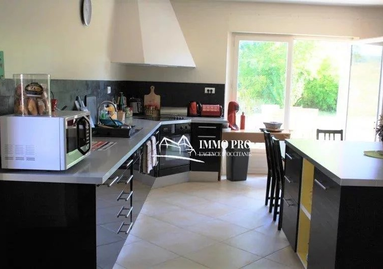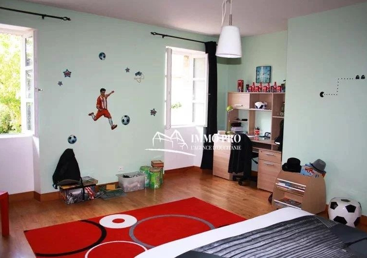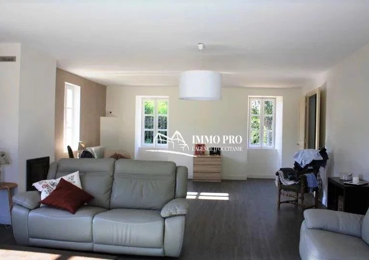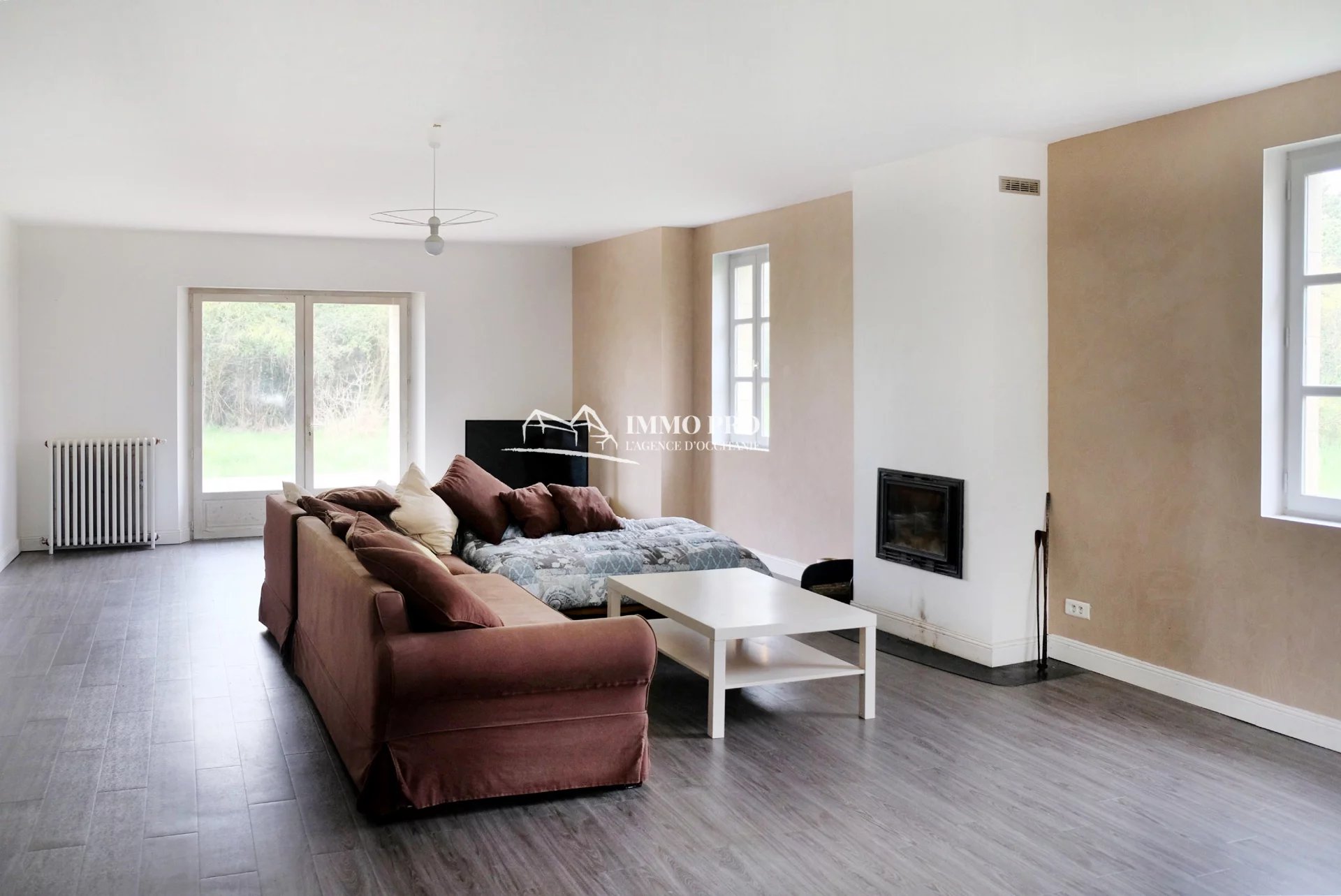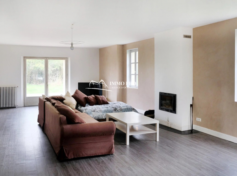 EXCLUSIVE – 5mn from amenities, SUPERBLY RENOVATED BUILDING of approximately 235m² of living space with OUTBUILDING, covered and uncovered terrace, on approximately 2,400m² of LAND. The central corridor has high ceilings and serves an equipped kitchen open to the dining room (beautiful fireplace), a pantry/laundry room, and a 50m² living room with fireplace opening onto a spacious terrace (60m²); Upstairs, beautiful landing, 4 bedrooms, 1 office, bathroom and separate wc. Oil fired central heating. BEAUTIFUL PARQUET FLOORS in the bedrooms, VINTAGE TILES in perfect condition in the central hallway and on the landing, all the windows are DOUBLE GLAZED. The roof is in good condition and the sewage system is up to STANDARDS. A beautiful outbuilding of around 65m² (Garage and boiler room), and 2 wells complete this property.
