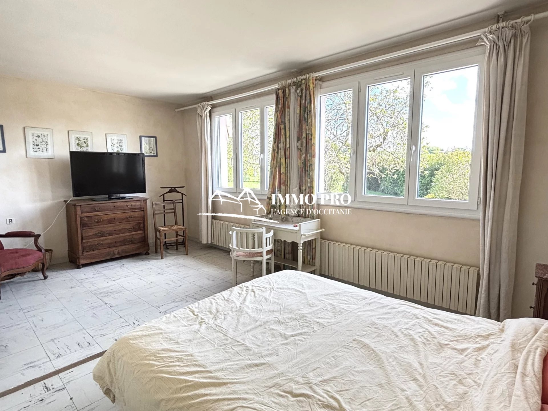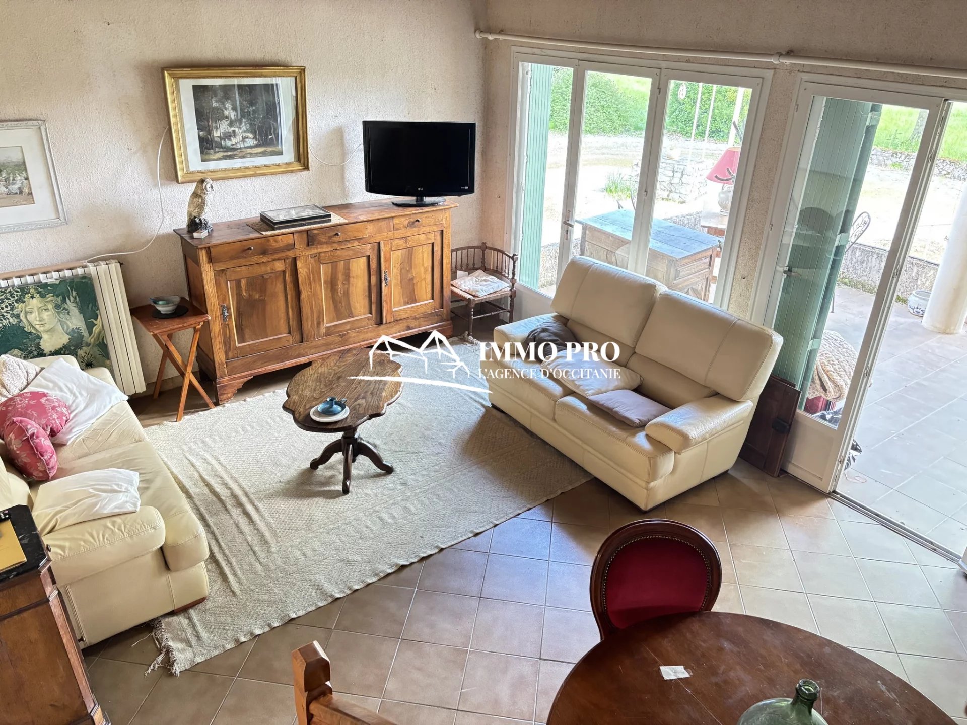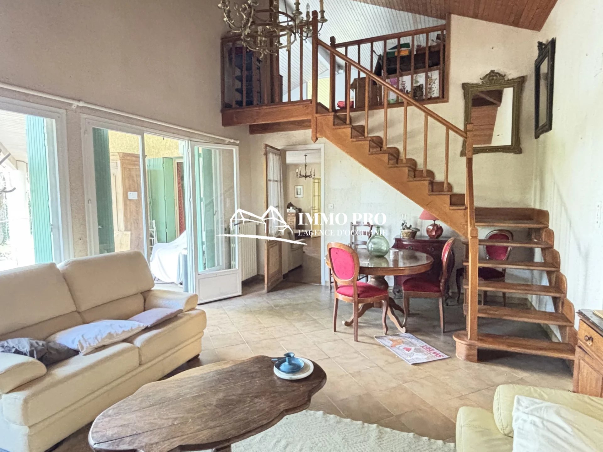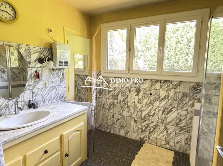 Just a few minutes from the town center, this 138m² home sits on a beautiful, tree-lined plot of approximately 1 hectare, featuring a pond and a well.