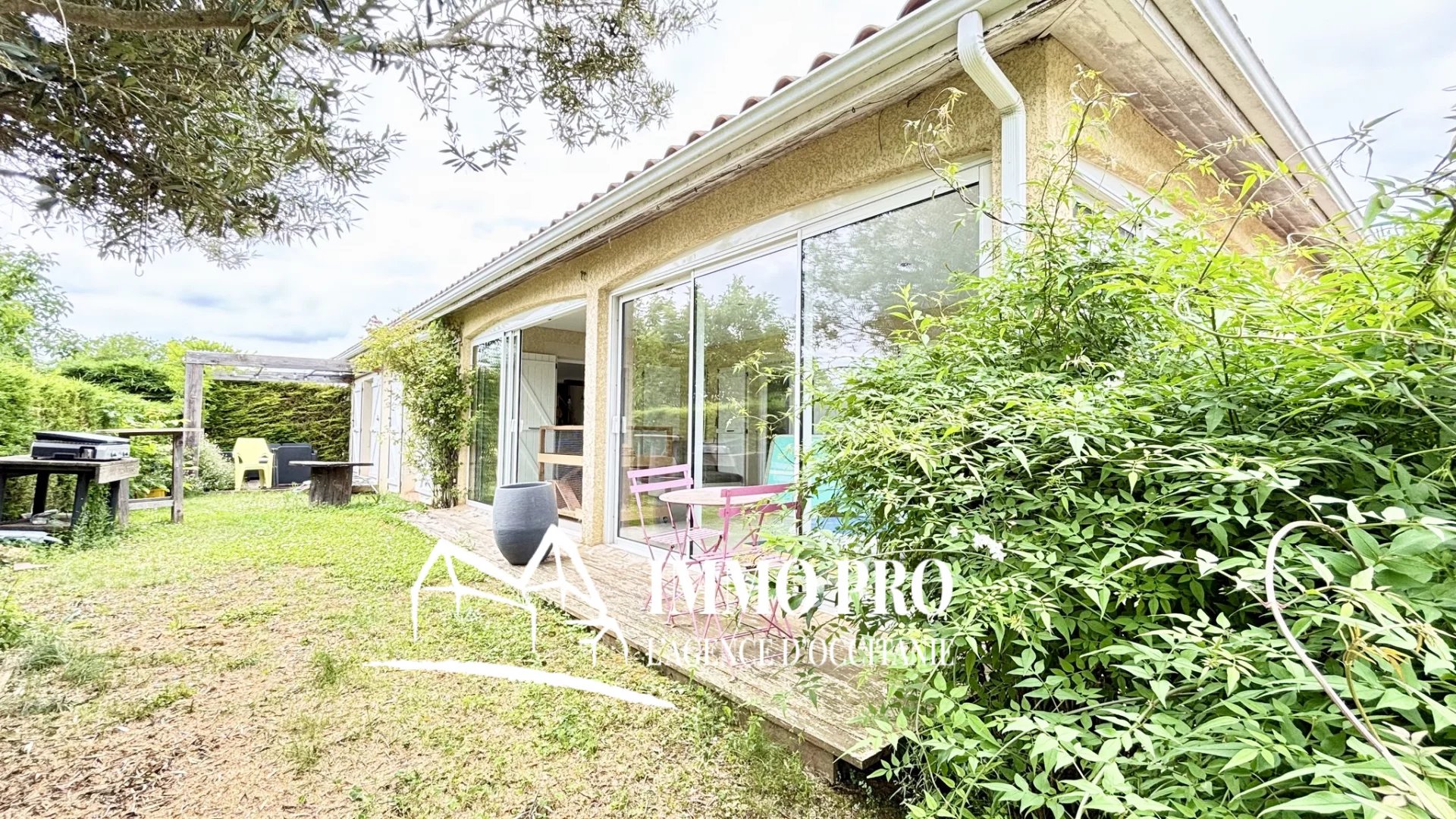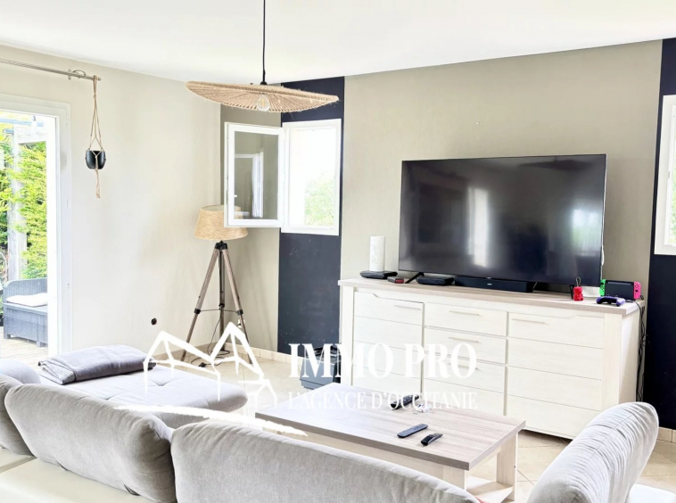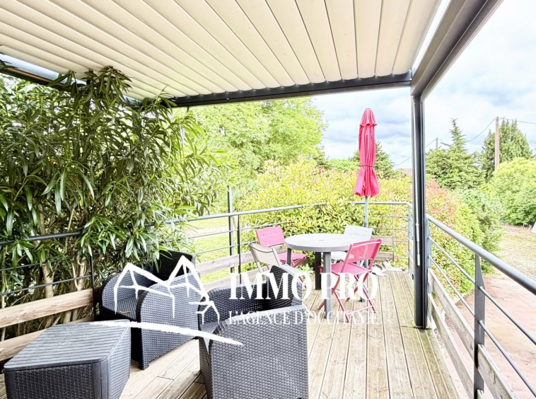 Between Samatan and Gimont, single-story villa built in 2005. 138m² of living space with a full basement on a wooded park of over 1.5 hectares and a magnificent view of the Pyrenees.