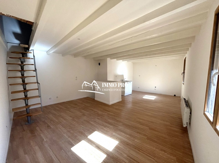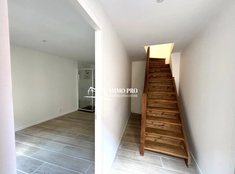 House of 55m² of living space with on the ground floor: entrance, bedroom with shower and sink, larder/laundry room. On the first floor: bright living room/kitchen of 25m² and on the second floor, an attic room that can be used as a bedroom.