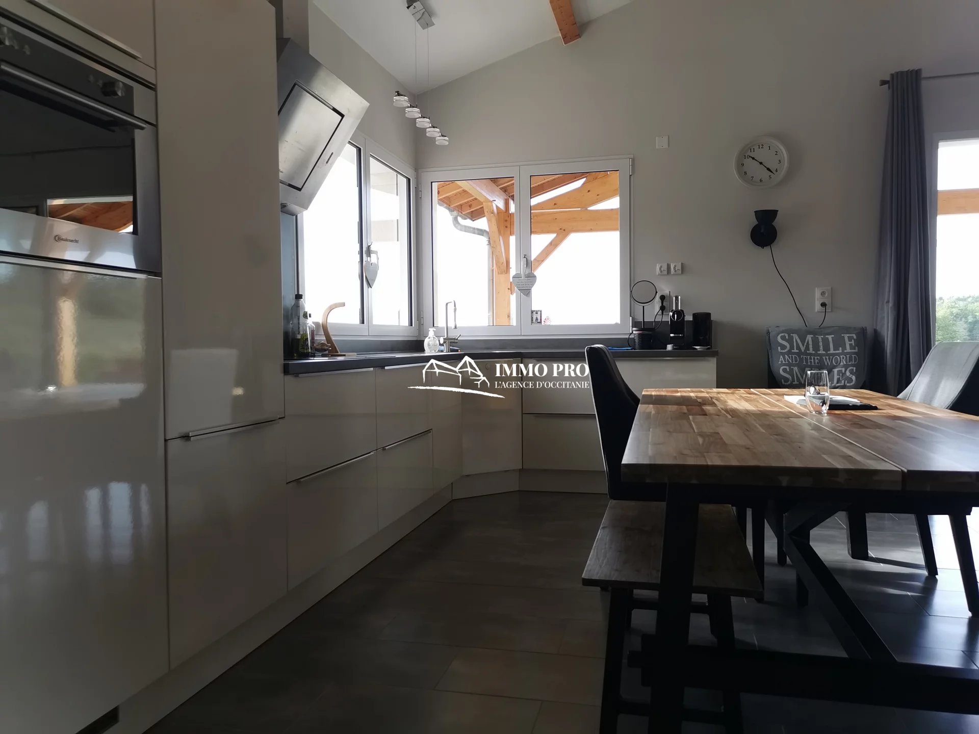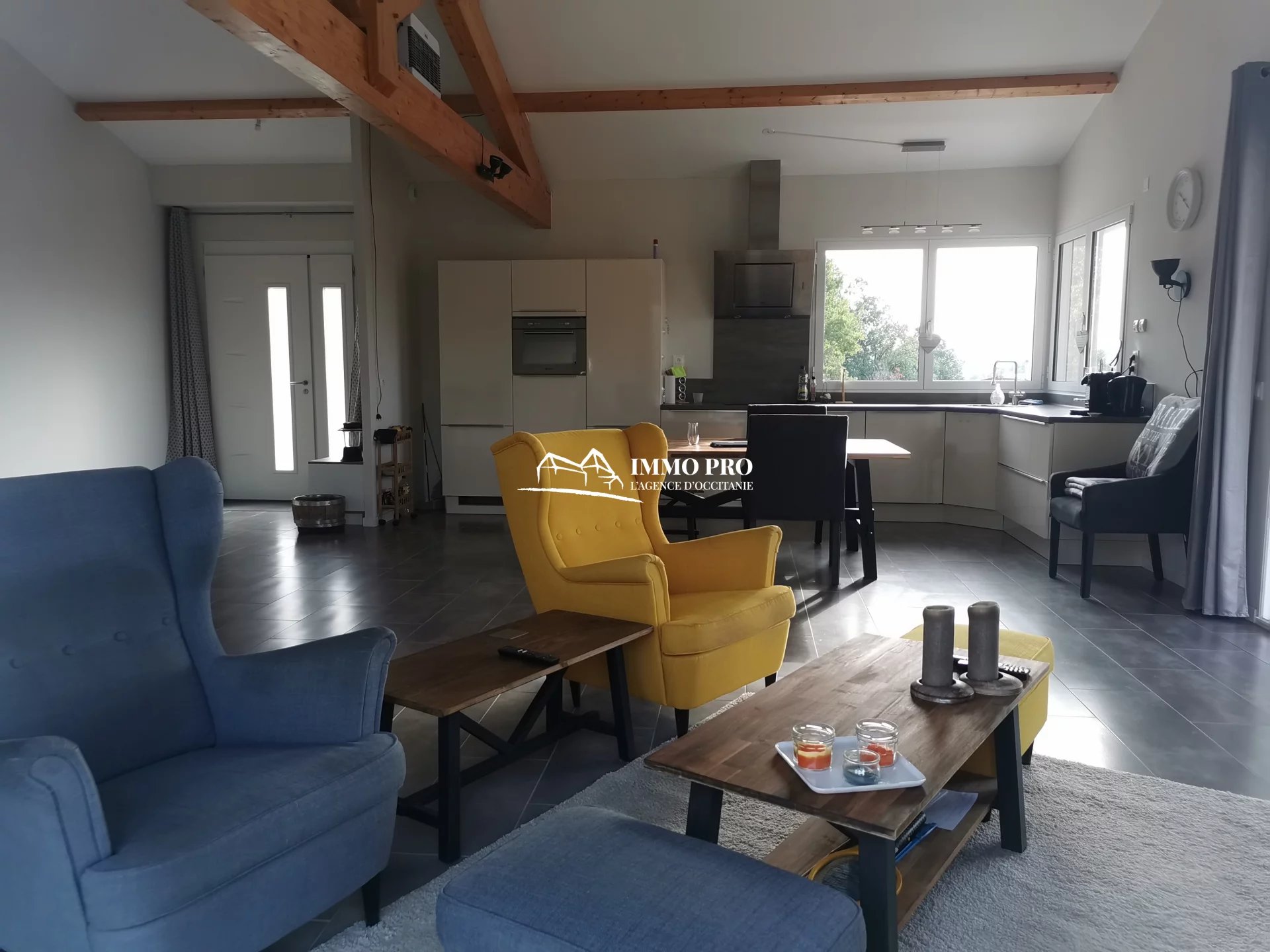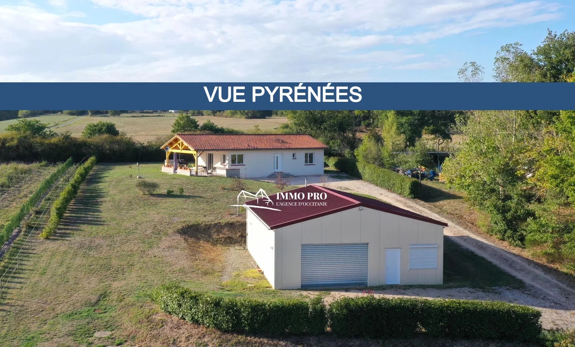 10mn from Samatan Lombez, villa built in 2014 about 100m² with large living room of 60m² and fully equipped kitchen with views of the Pyrenees, 2 bedrooms each with its own bathroom + toilet, pantry / laundry. South-facing covered patio and opened patio facing West. Underfloor heating by heat pump. Lockable metal hangar IN PERFECT CONDITION of 120m² with car lift, roller shutter, and seperate lockable room (office, toilet, shower). Sanitation to standards. Out of sight of neighbourgs. Countryside environment.