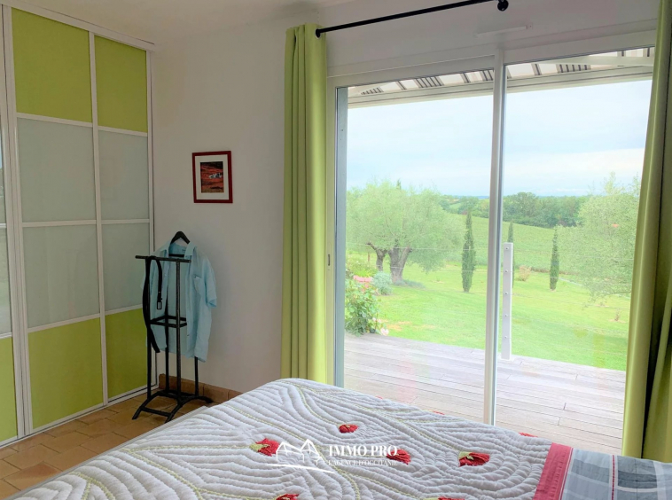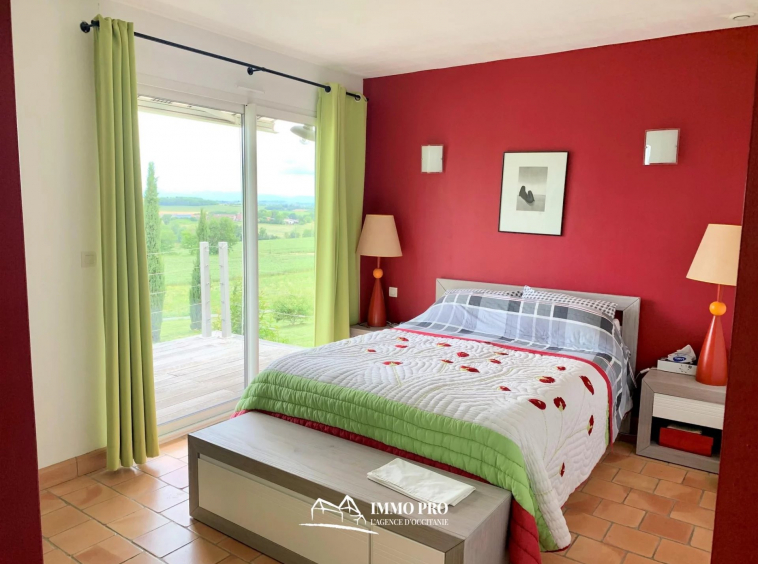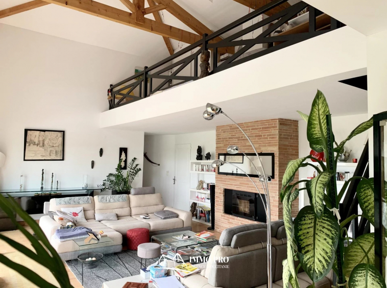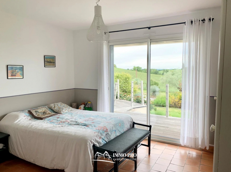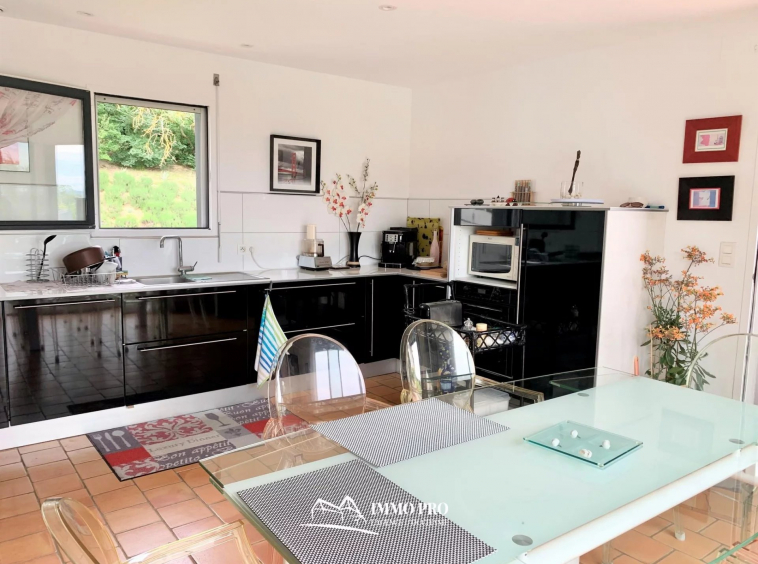 Living room of 40m ² with mezzanine, a large kitchen of 23m² overlooking a covered terrace of 35m² and pantry. Night side, a suite with built-in cupboards and bathroom and toilet and 2 bedrooms with built-in cupboards, bathroom with toilet. A DOUBLE GARAGE of about 37m² completes this property. MAGNIFICENT VIEW OF THE PYRENEES.