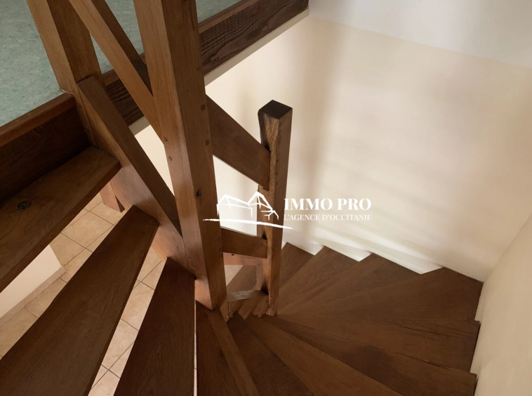 House of 86m²of living space. On the ground floor, beautiful living space with open kitchen of 30m², a bedroom of 16m² with cupboards, bathroom and toilet. Upstairs, landing and large bedroom of 20m².