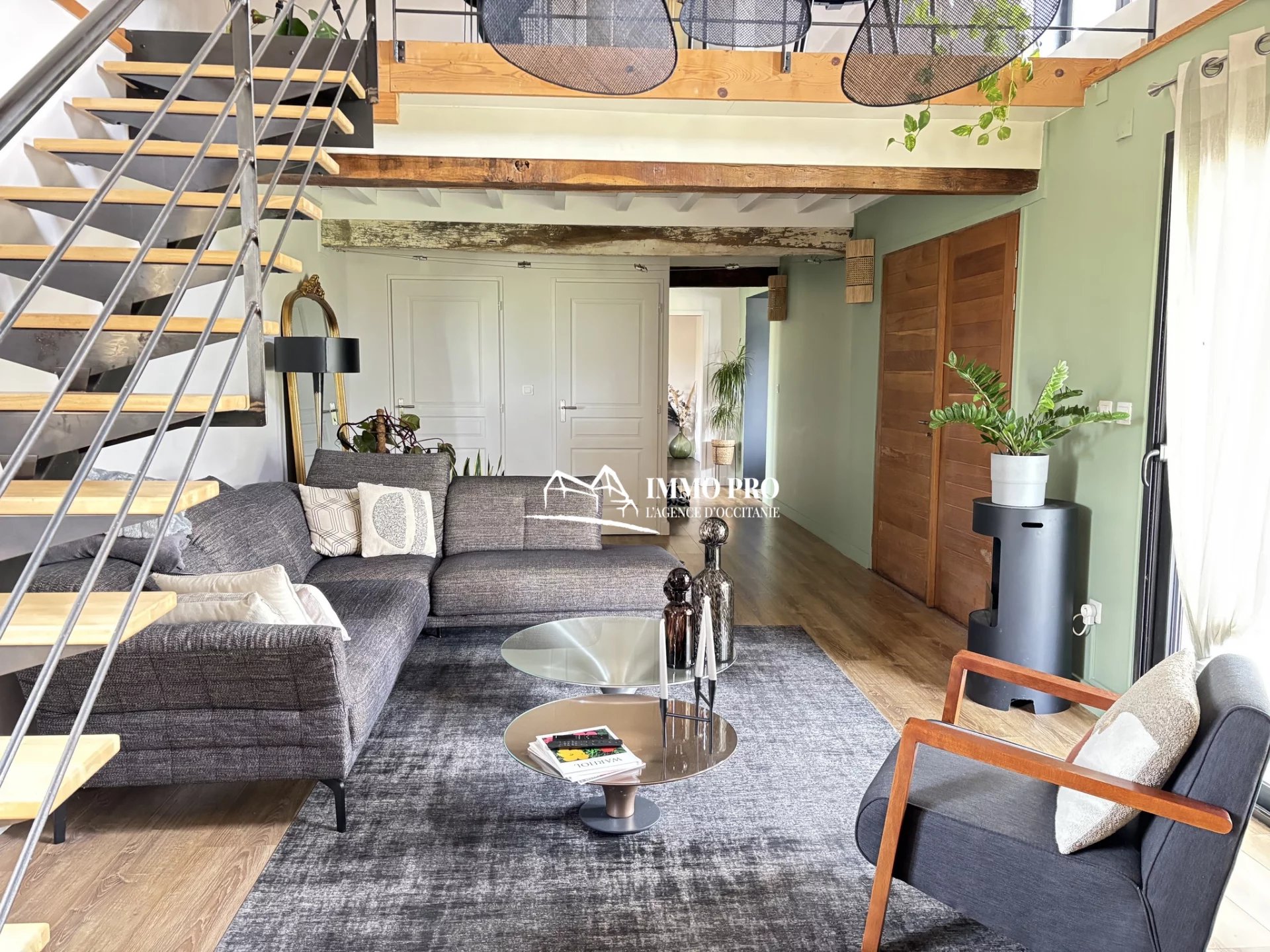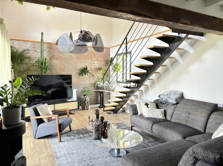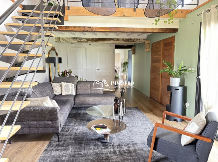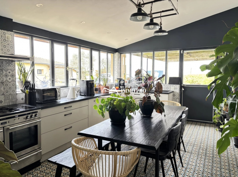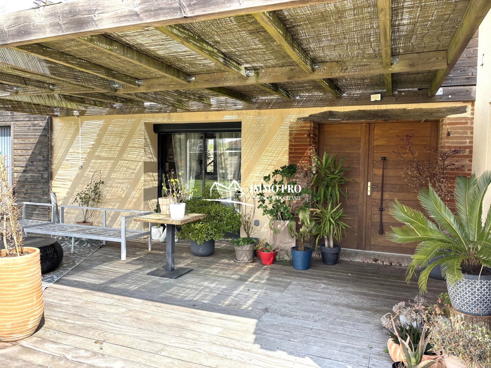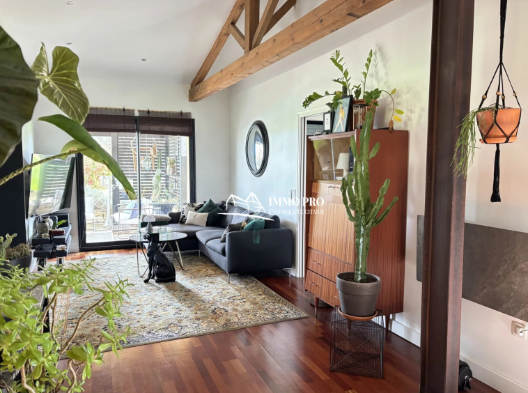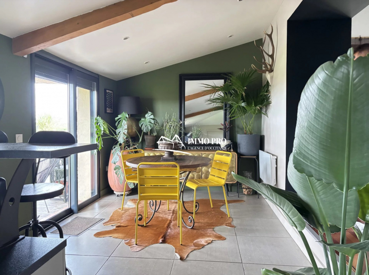 On the ground floor, a 30m² living room, a 23m² kitchen opening onto a shaded terrace, one bedroom, a bathroom, a pantry, and separate toilets.