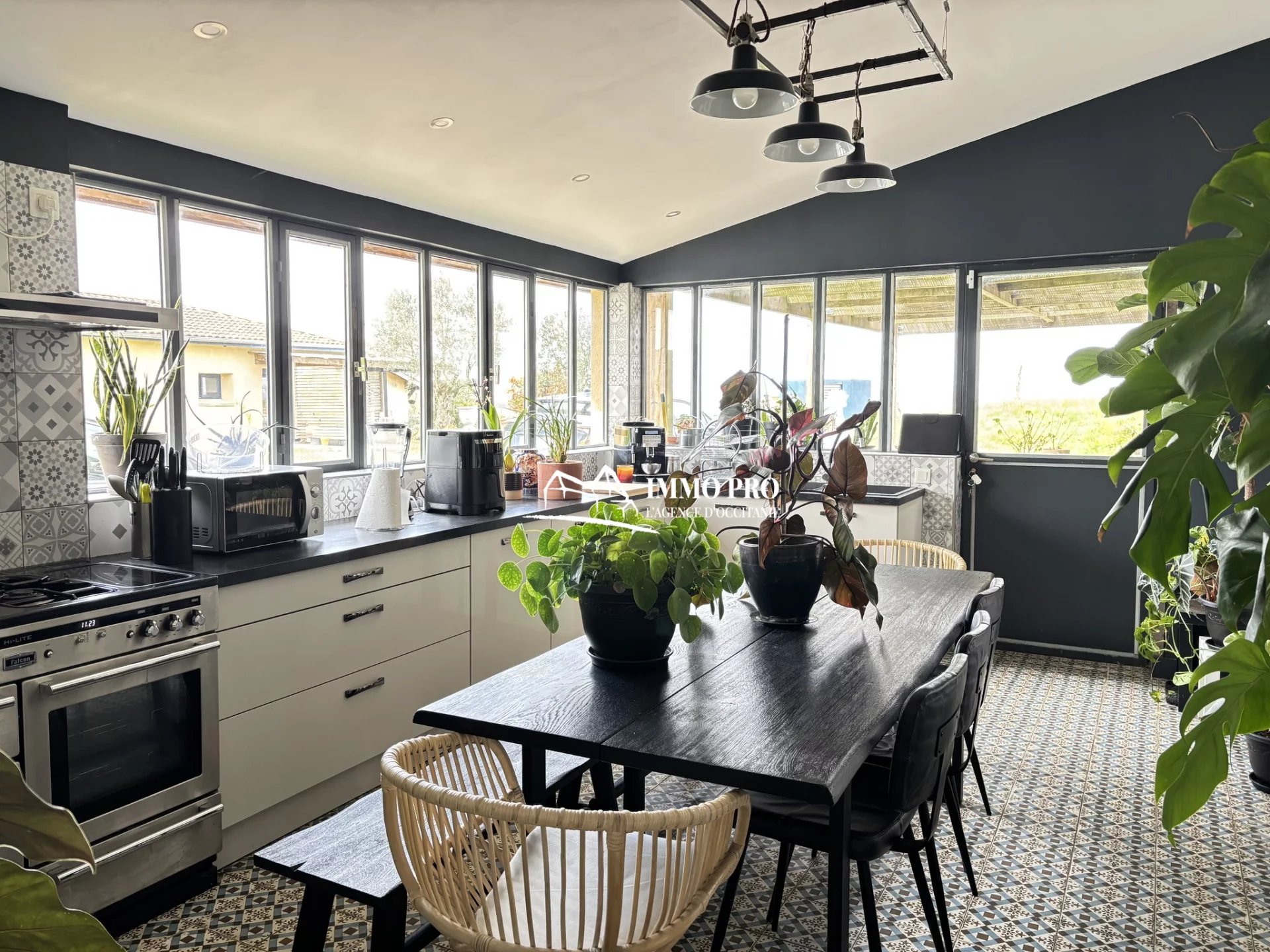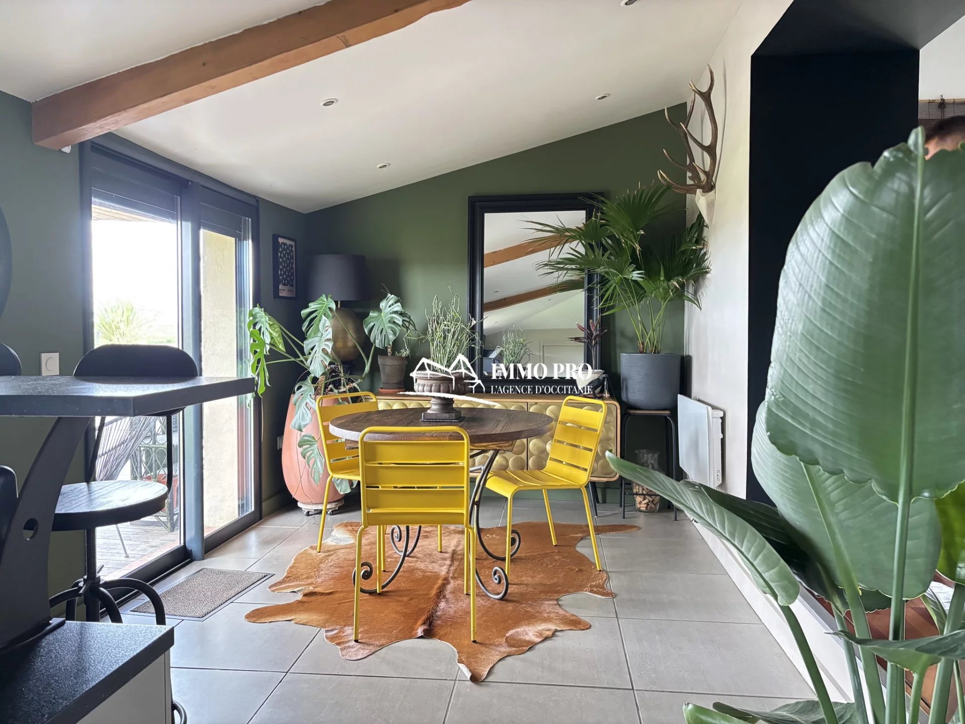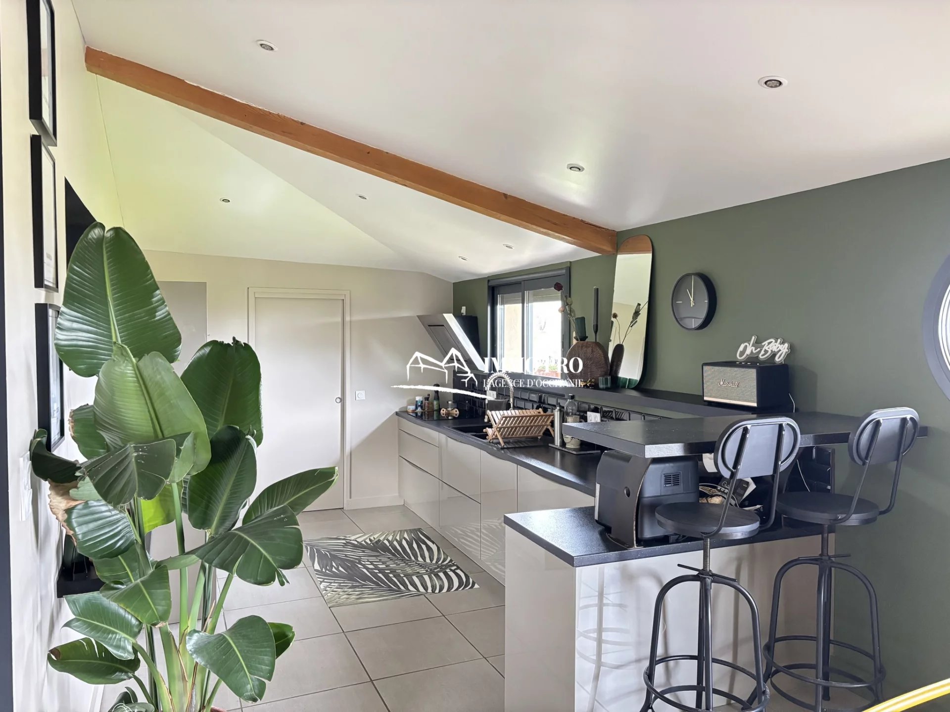 On the ground floor, a 30m² living room, a 23m² kitchen opening onto a shaded terrace, one bedroom, a bathroom, a pantry, and separate toilets.