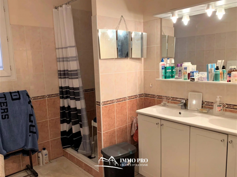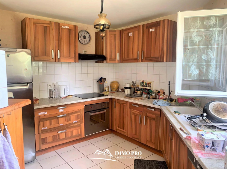 House of around 107m² comprising an entrance-conservatory, a living room/kitchen of 46m² with wood-burning stove, 3 bedrooms with cupboards, shower room, laundry room, wc.