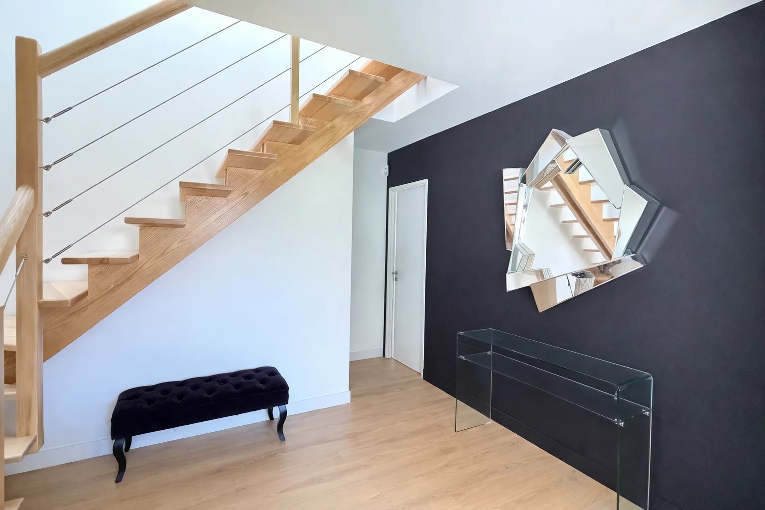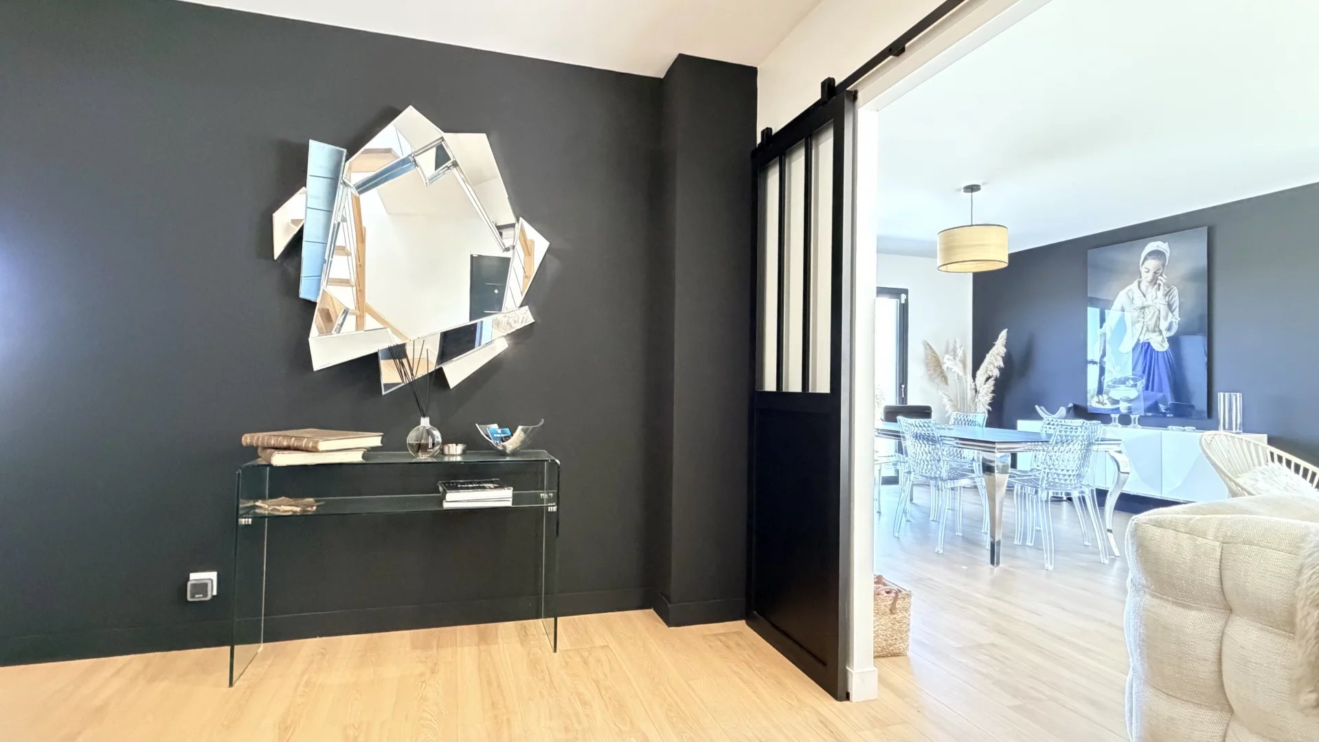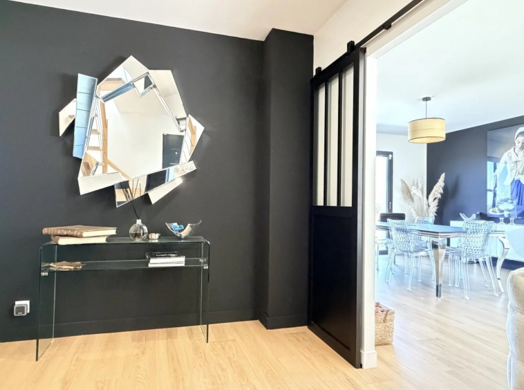 Au rez-de-chaussée, belle entrée, séjour lumineux avec cuisine ouverte, une suite parentale (Chambre avec dressing et salle d’eau), toilettes, buanderie; A l’étage, espace bureau, deux chambres, salle d’eau et toilettes.