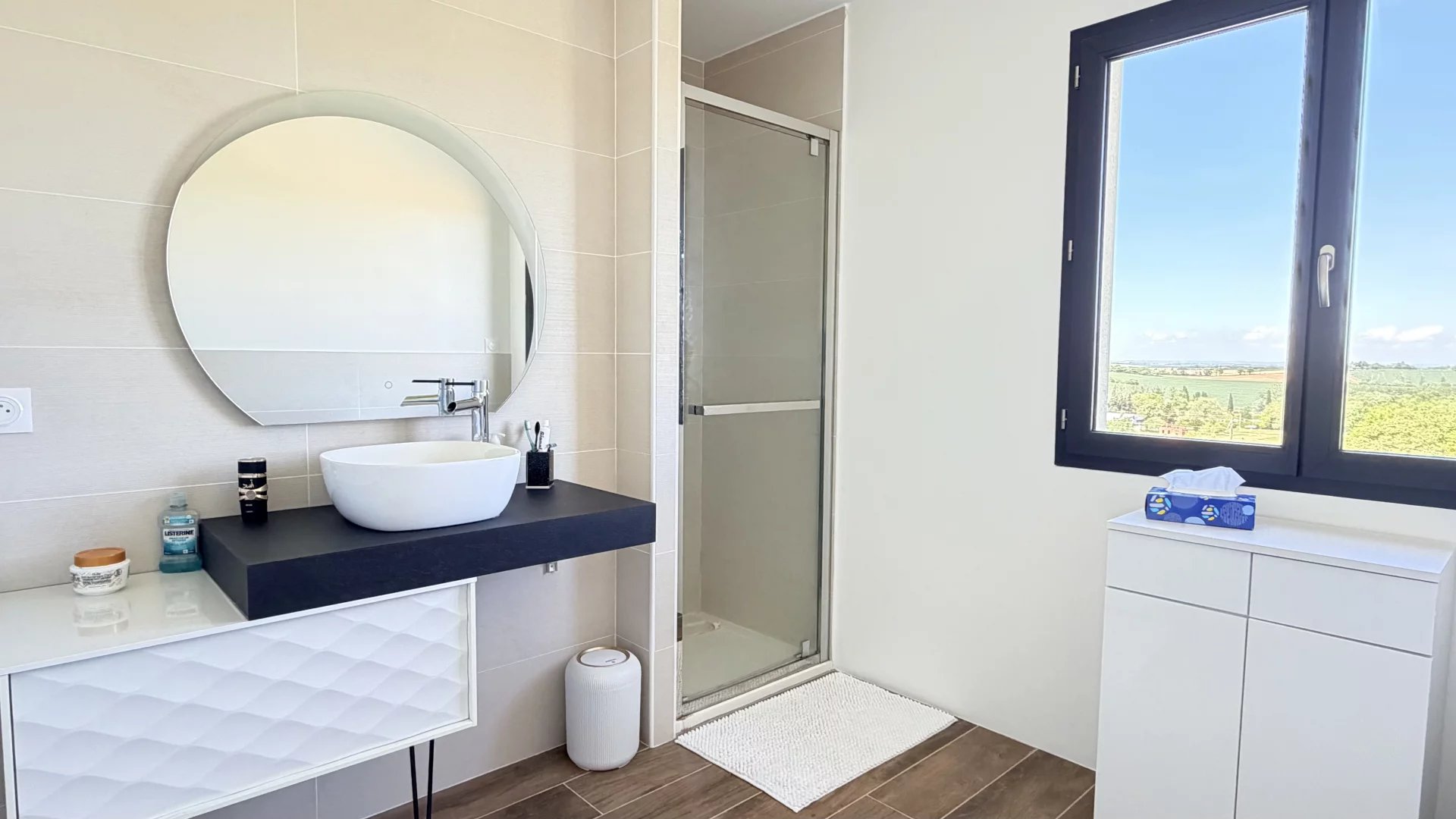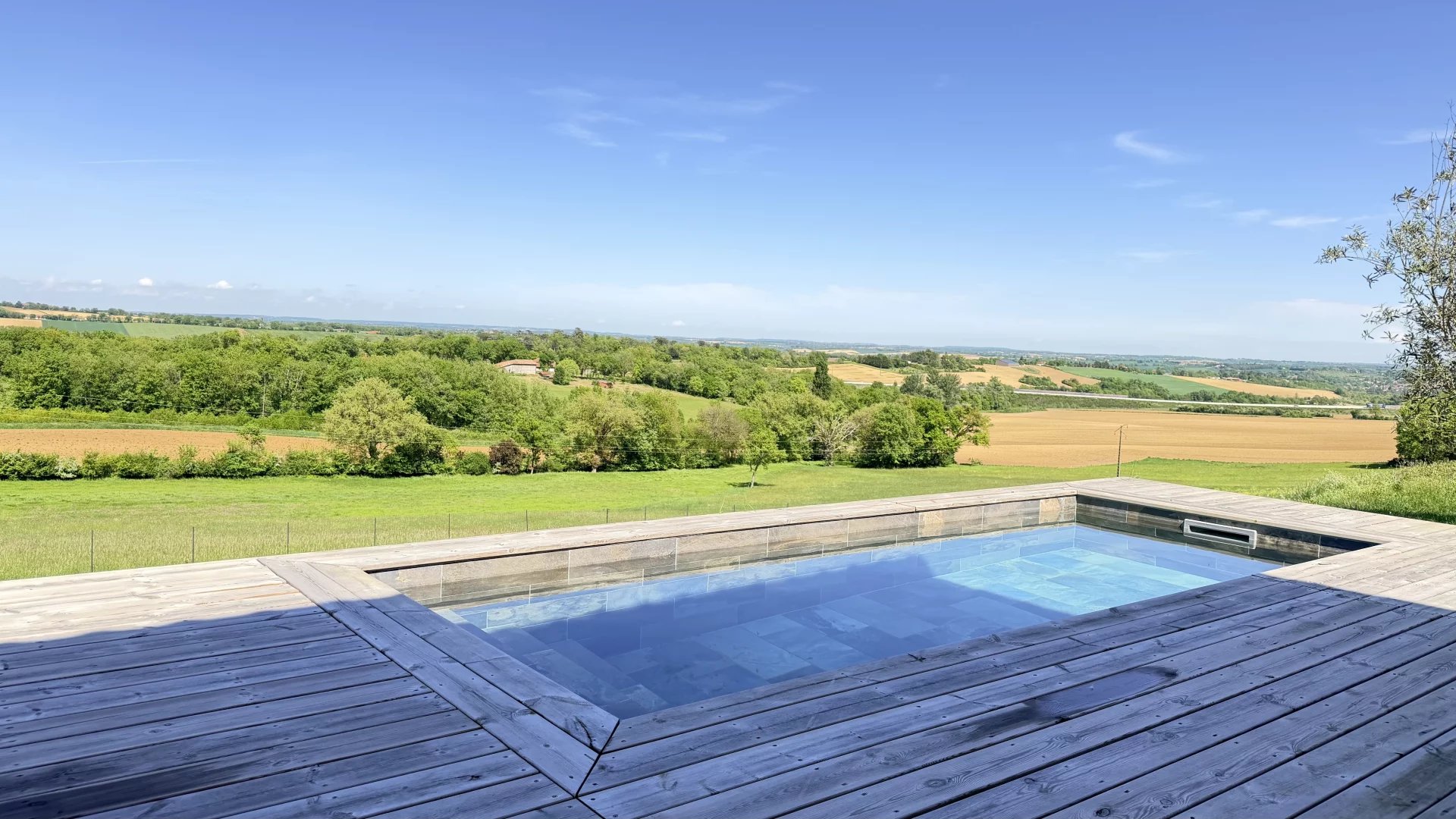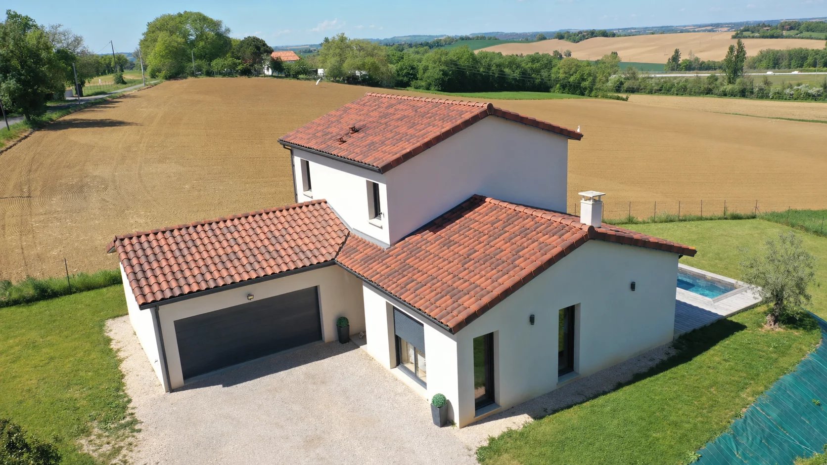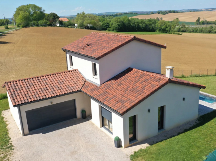 A 5mn du centre-ville de Gimont, Villa de 2019 de 117m² habitables sur un joli terrain de 1.500m² clôturé avec sa piscine en pierre de Bali. Très belle vue sur la campagne Gersoise. Aucun vis-à-vis.