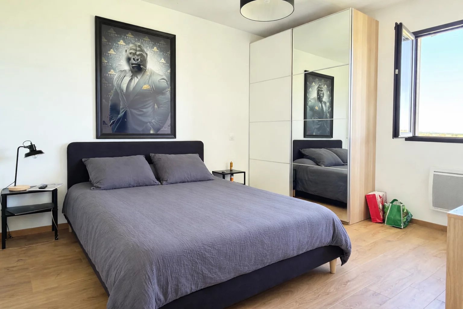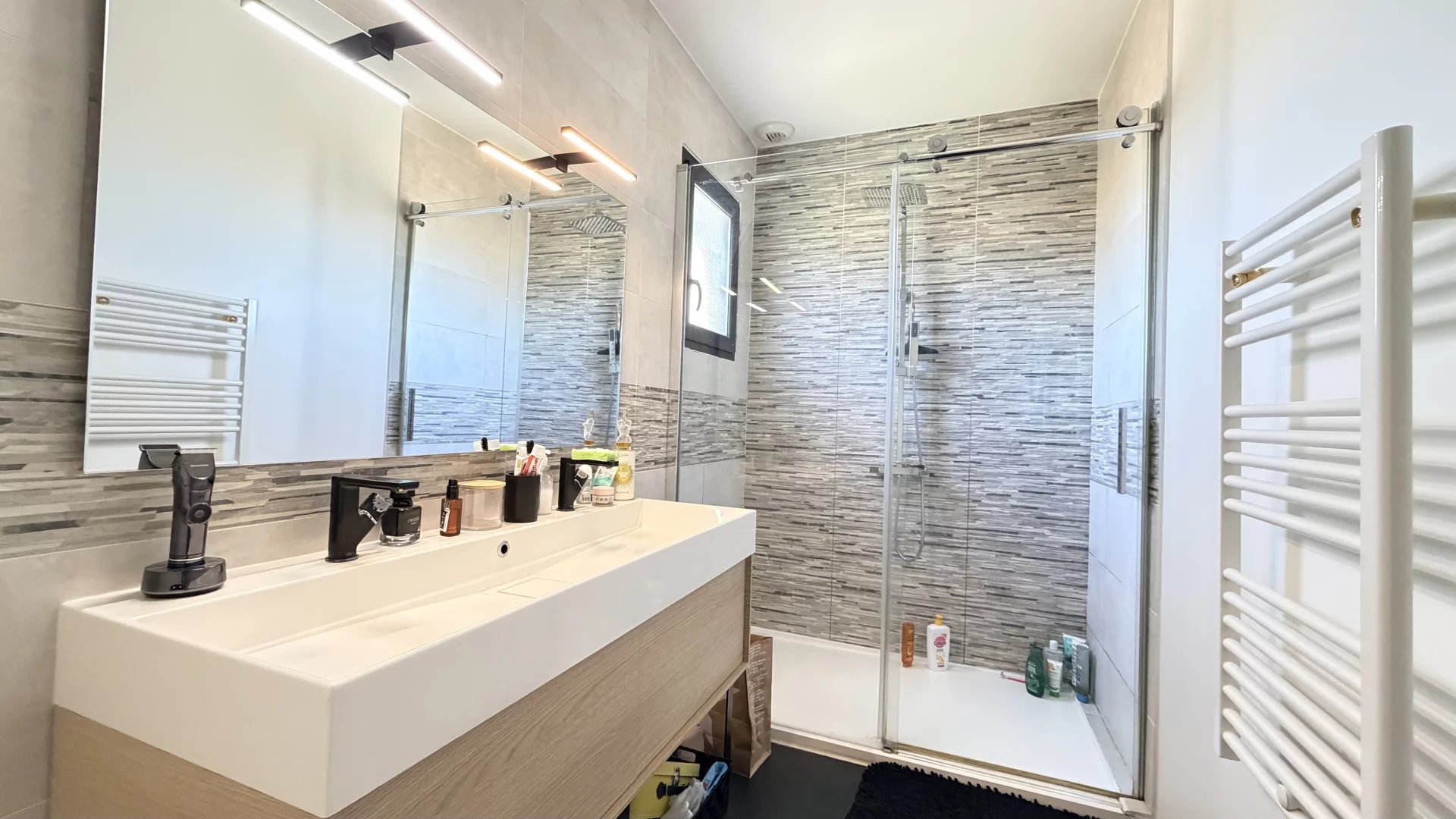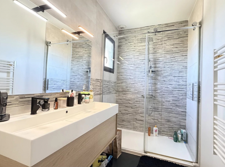 Garage double de 35m² avec porte motorisée.