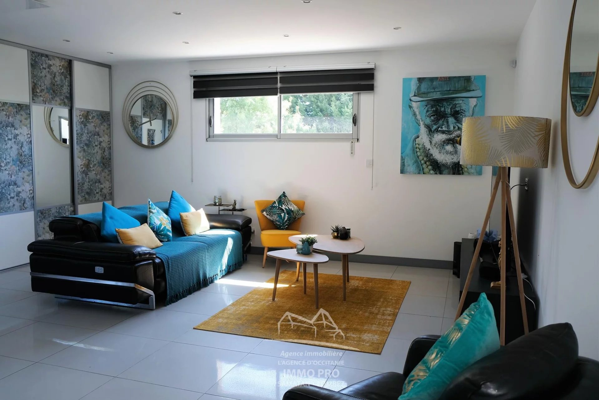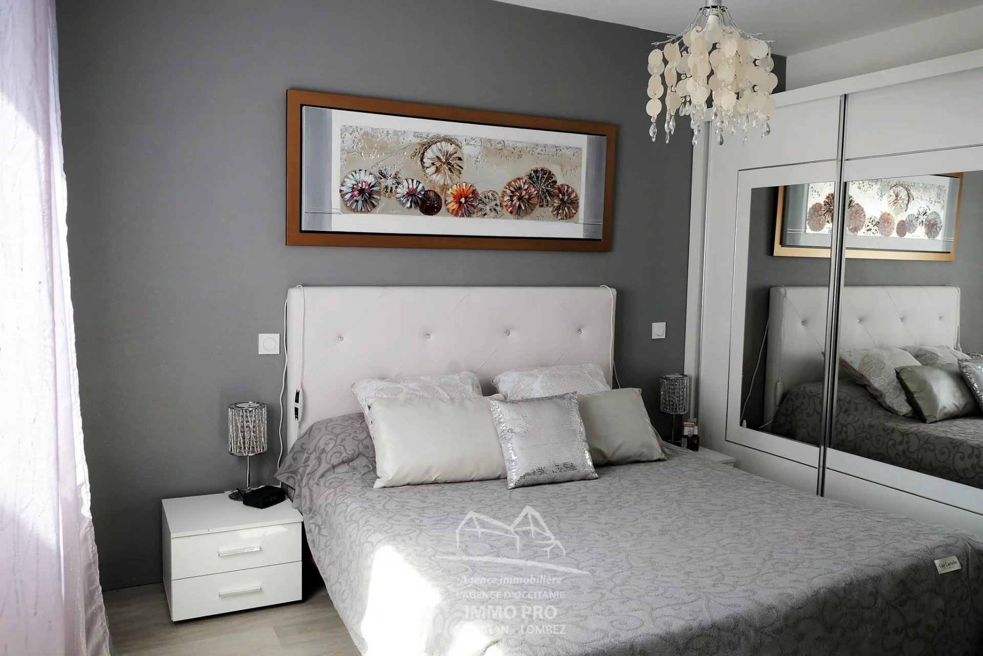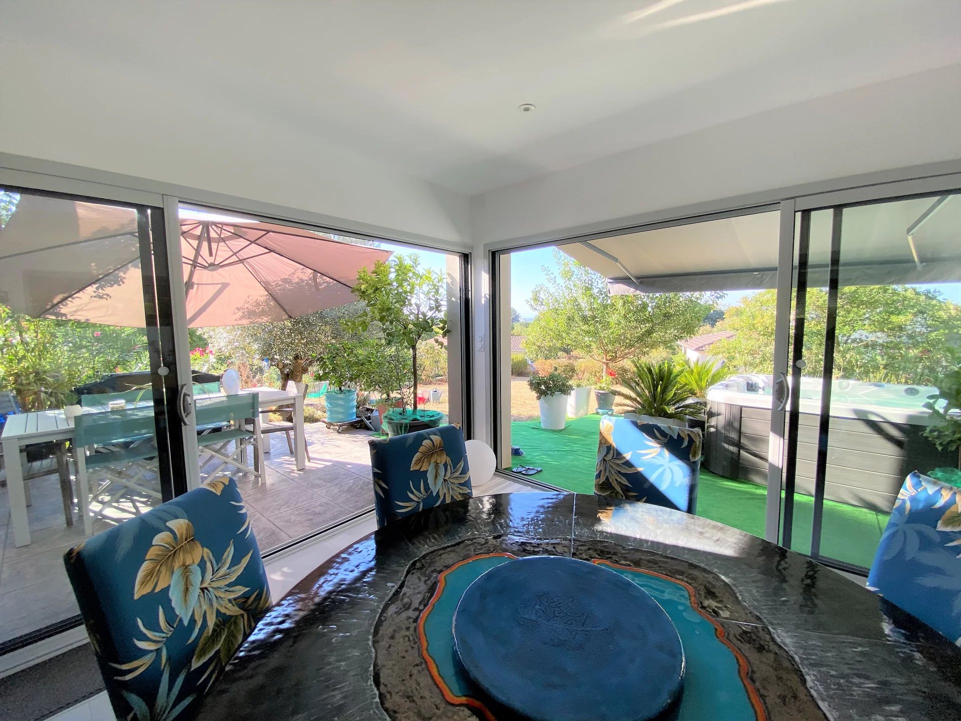 A SAMATAN, BELLE LUMINOSITE pour cette villa de plain-pied, en position dominante, d’environ 118m² habitables. Cuisine équipée haut-de-gamme ouverte sur le séjour, véranda, sur terrasses (Est et Sud) avec SPA et Vue Pyrénées, 2 chambres dont 1 suite salle d’eau/dressing, bureau, cellier, wc.