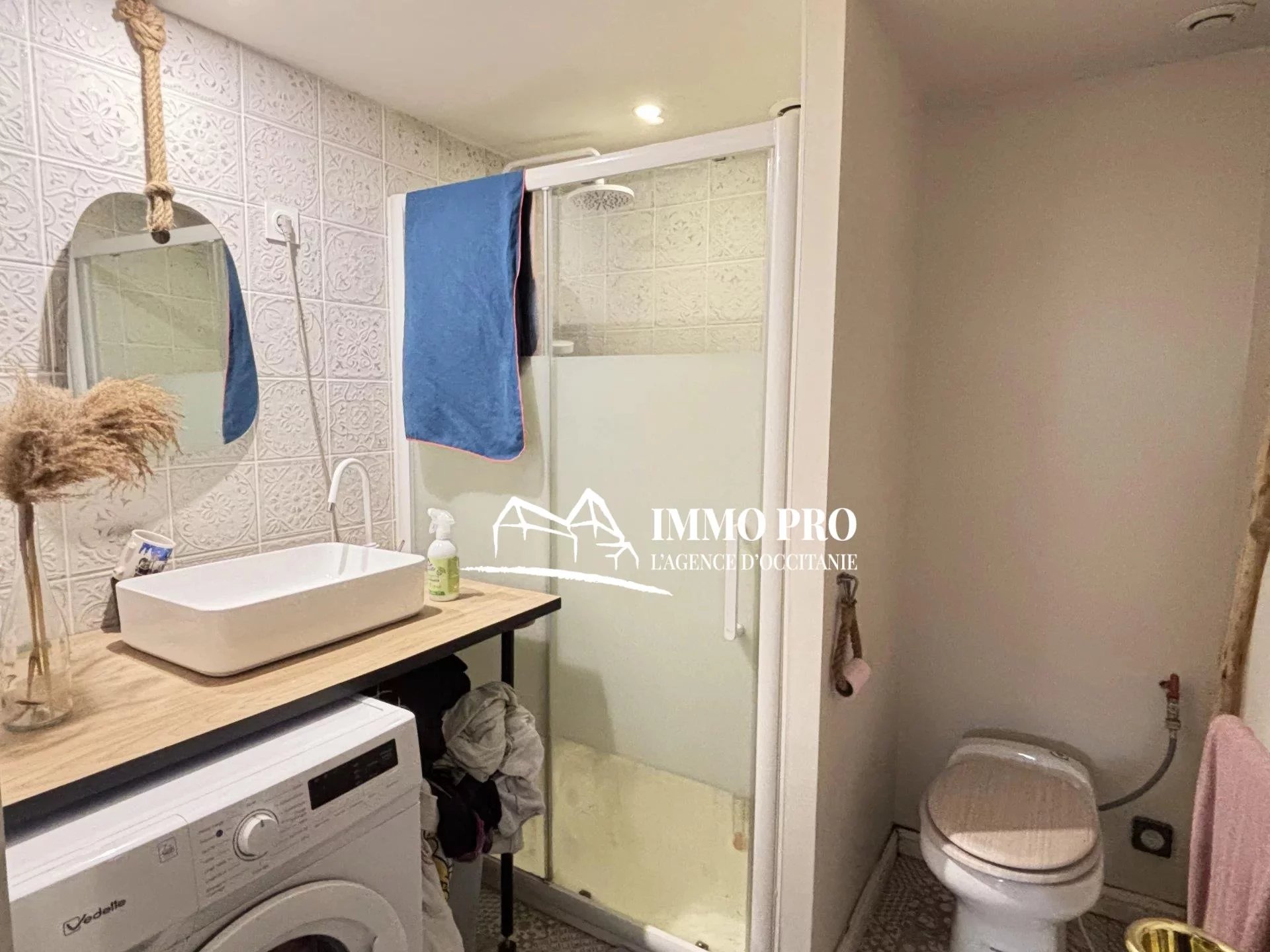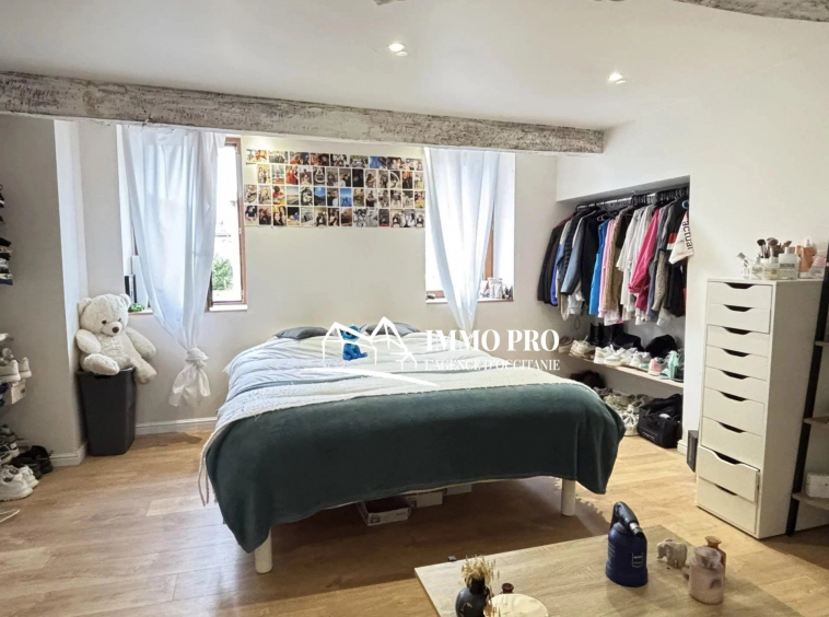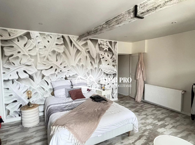 Renovated 136m² house comprising a dining room, living room, kitchen, 3 large bedrooms, office, and shower room with toilet.