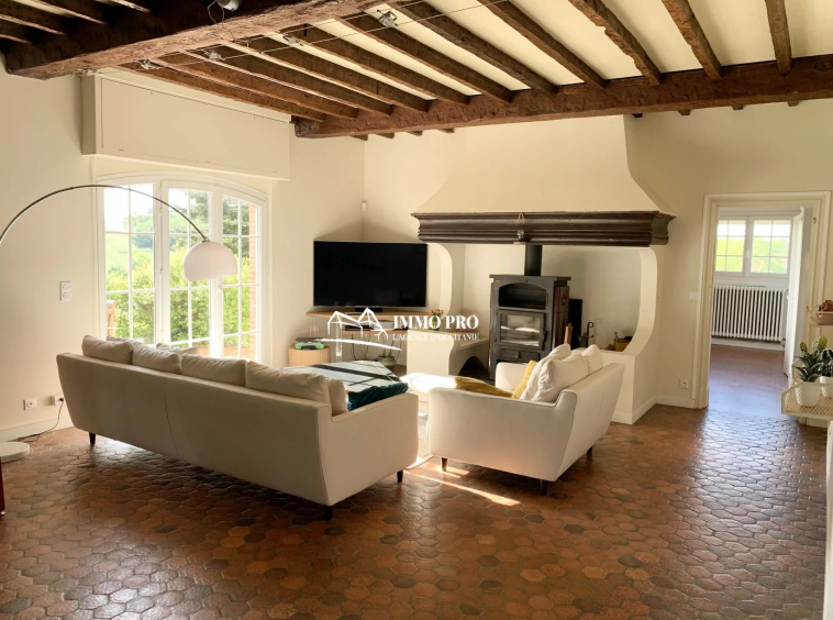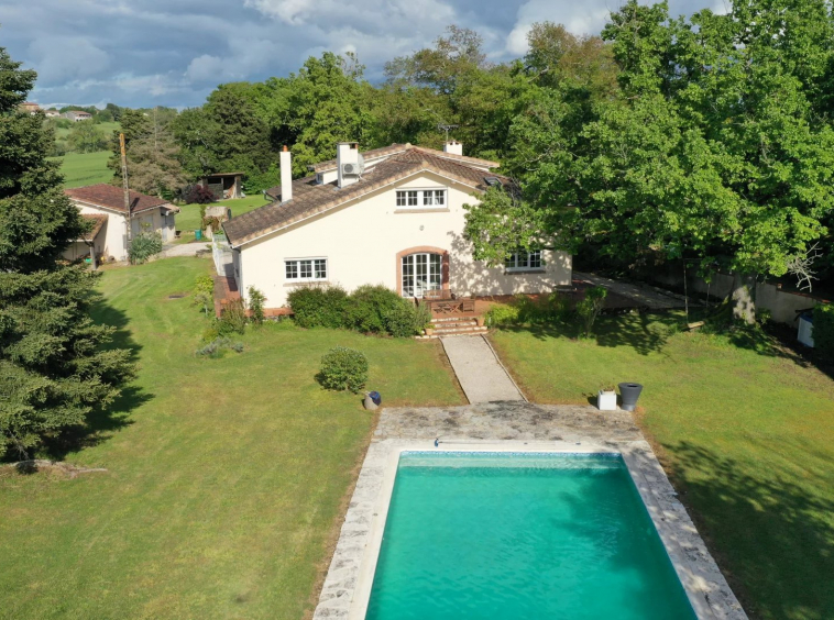 Piscine 12×6 et Puits sur un parc de 6.000m² avec de beaux arbres. Jolie VUE DEGAGEE sur la campagne.