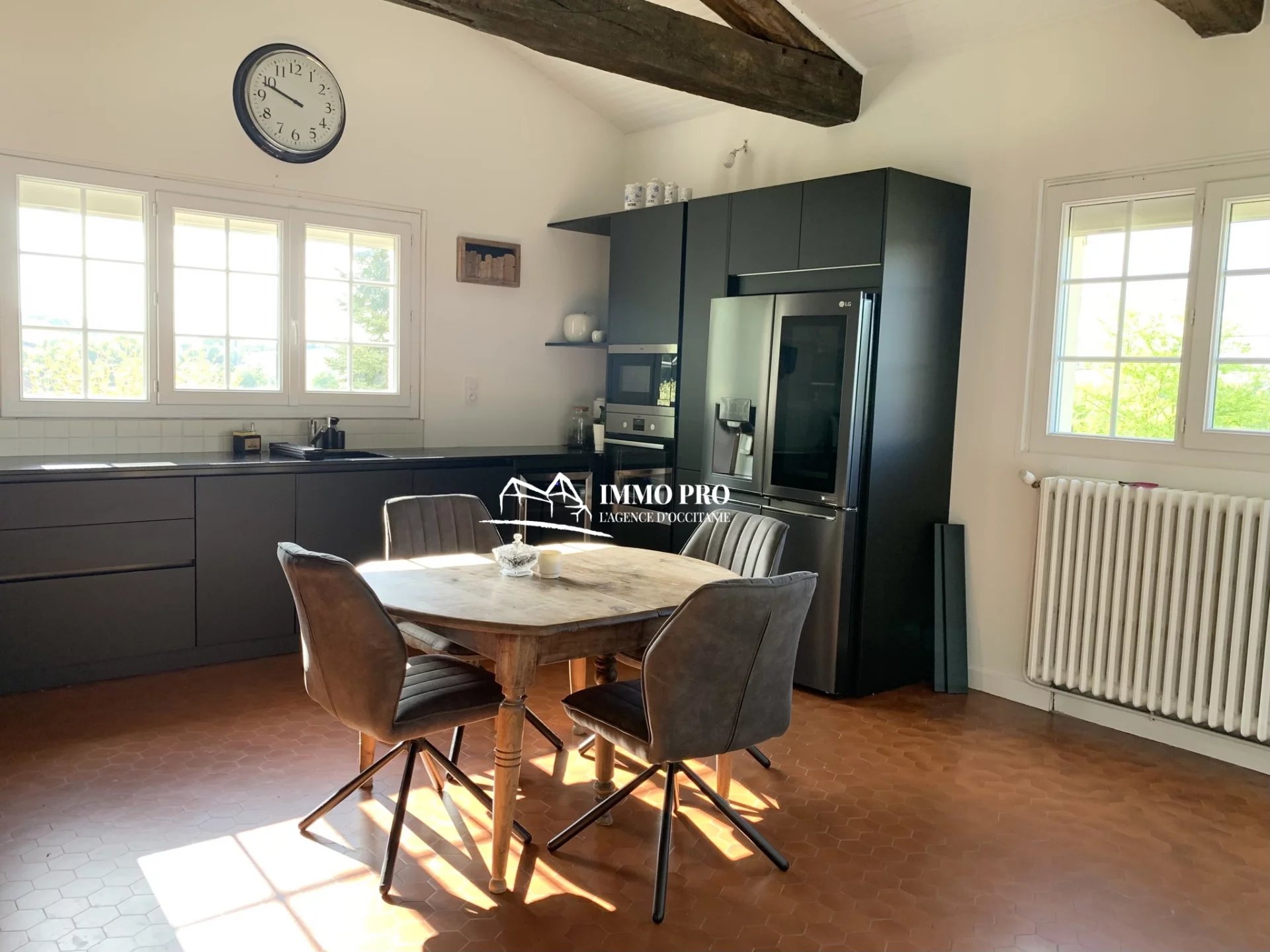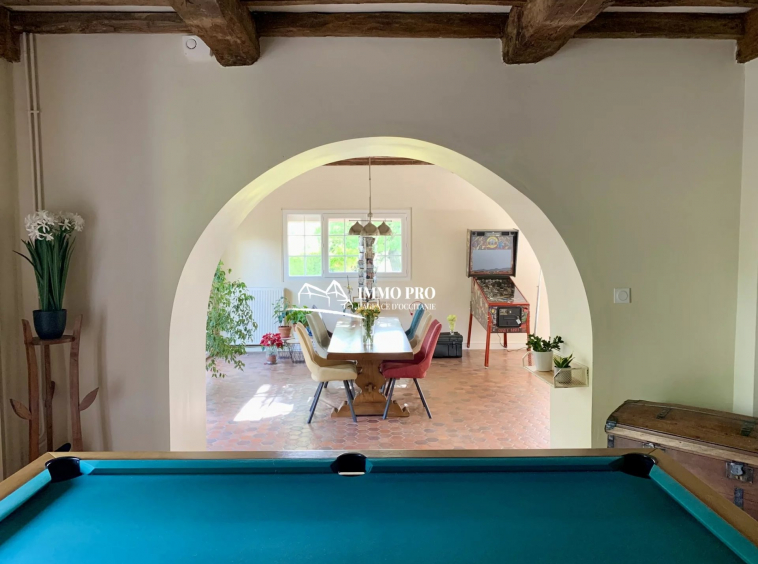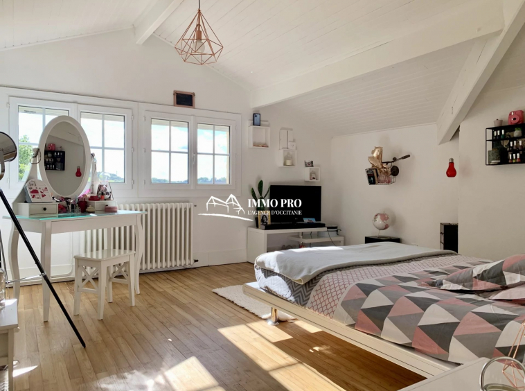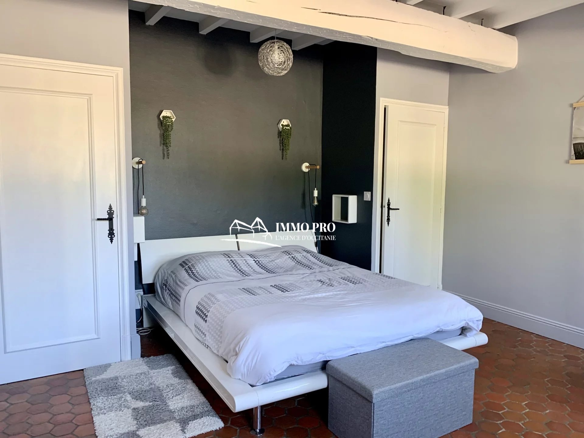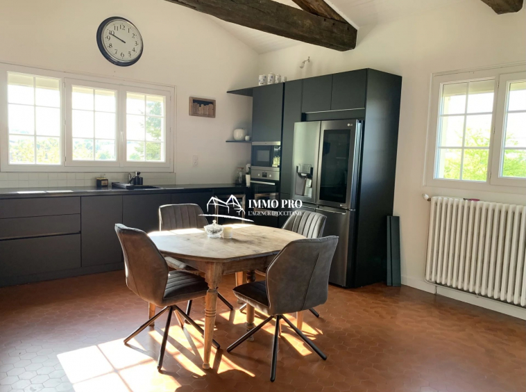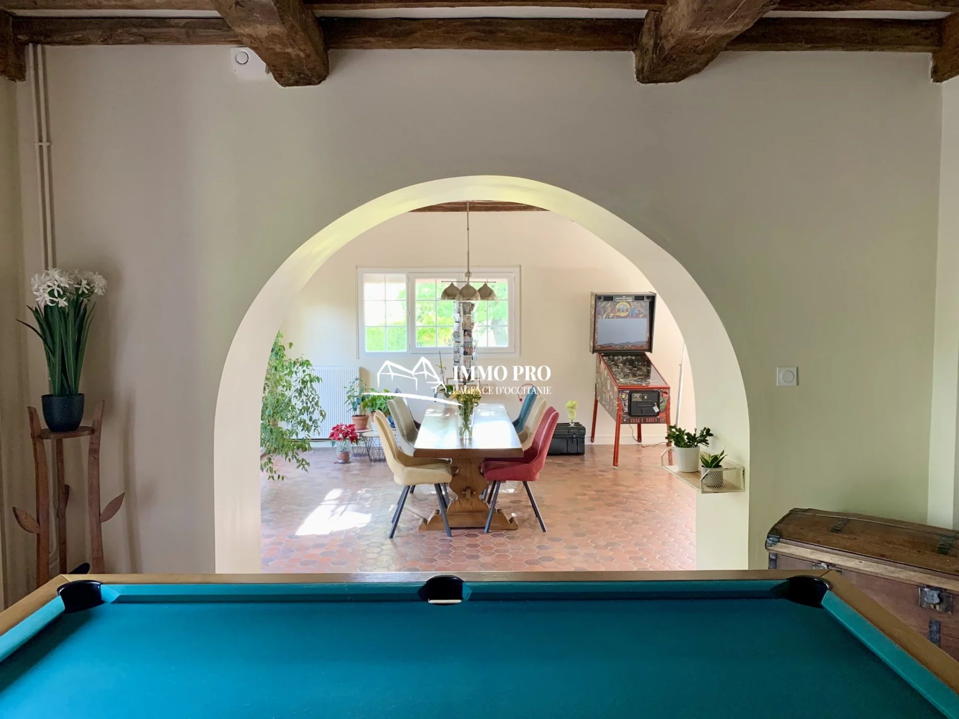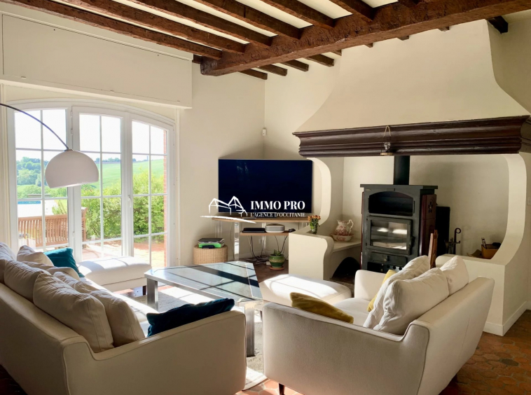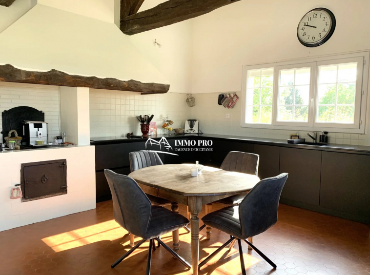 In the direction of Isle-Jourdain, this period house BATHED in LIGHT of approximately 257m² of living space combines character and modernity. On the ground floor, a spacious entrance, a magnificent living room of 75m² with wood stove, a high-end kitchen of 26m², pantry, two bedrooms of more than 20m², bathroom and toilet. Upstairs, a landing that can be used as an office, 4 bedrooms, bathroom and toilet.