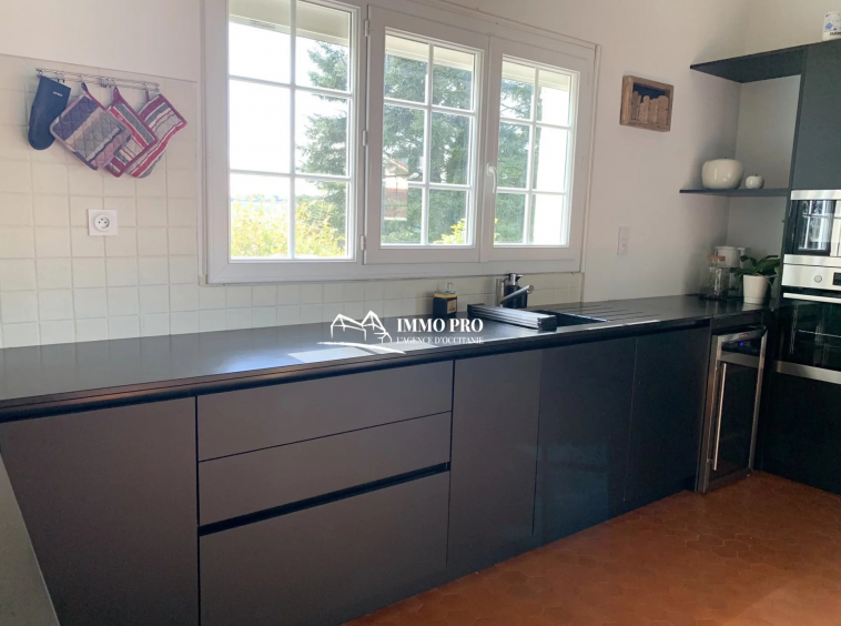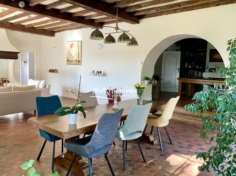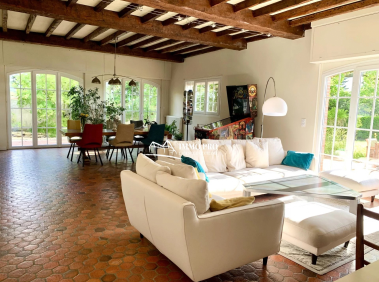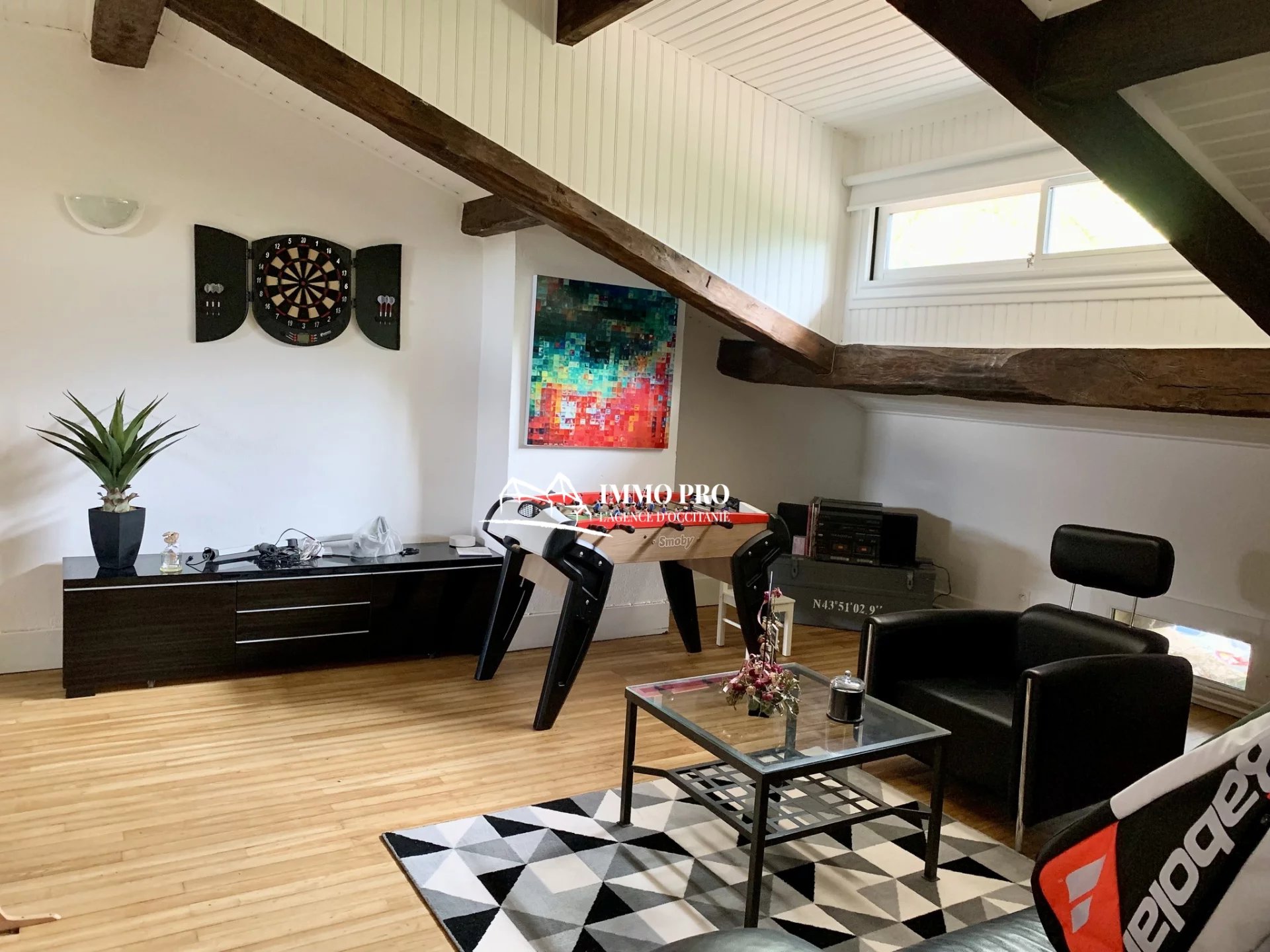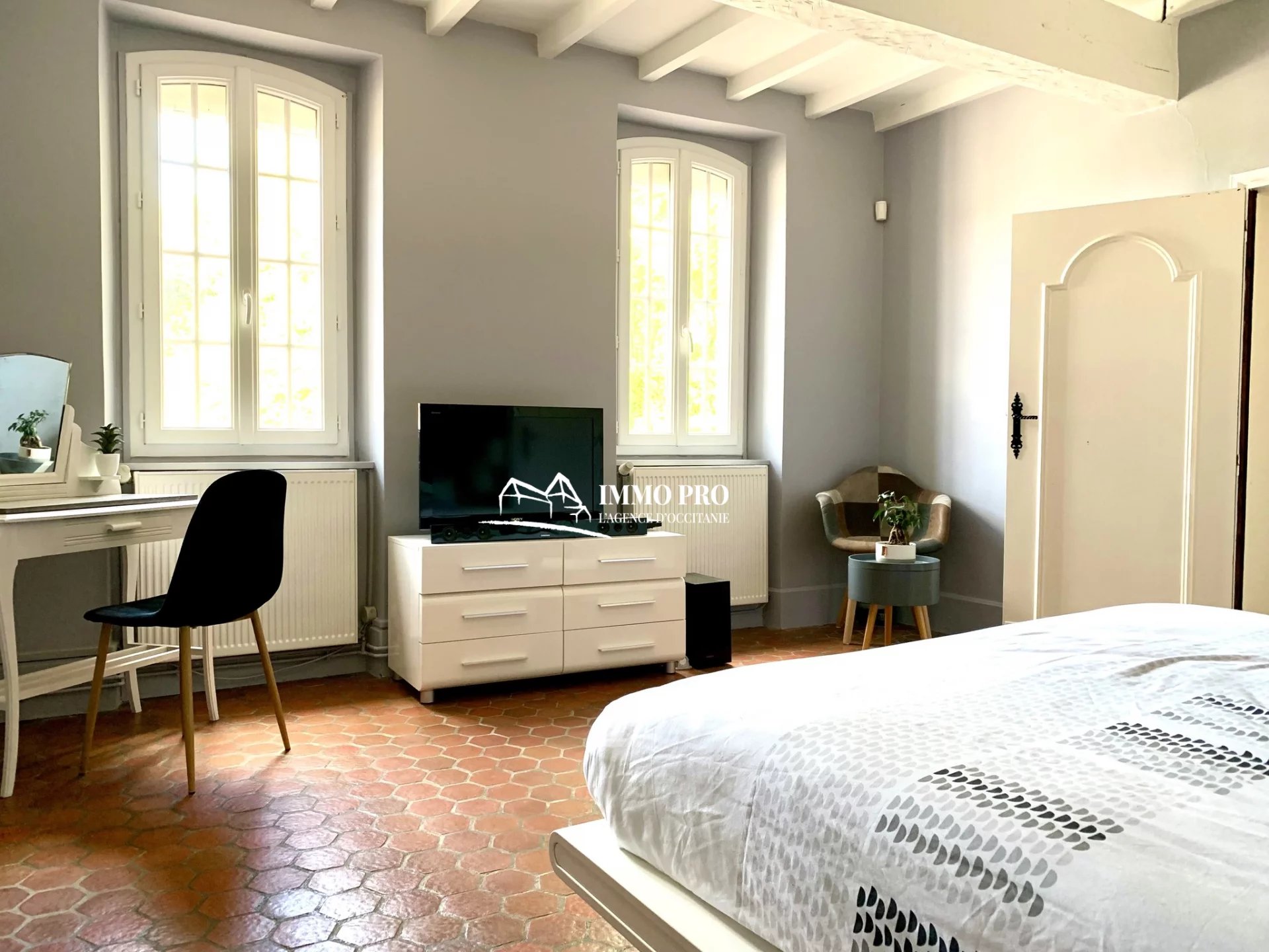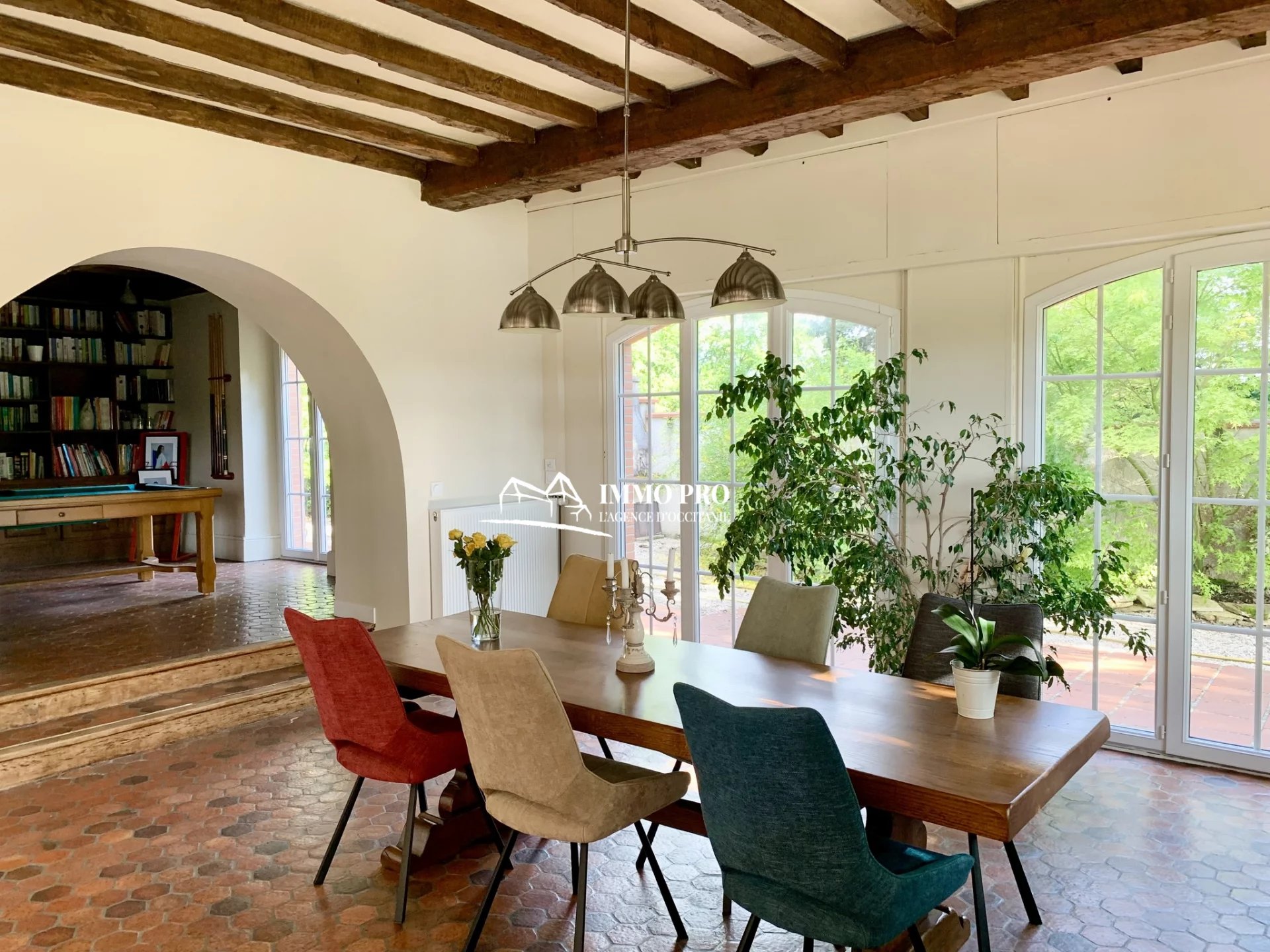 In the direction of Isle-Jourdain, this period house BATHED in LIGHT of approximately 257m² of living space combines character and modernity. On the ground floor, a spacious entrance, a magnificent living room of 75m² with wood stove, a high-end kitchen of 26m², pantry, two bedrooms of more than 20m², bathroom and toilet. Upstairs, a landing that can be used as an office, 4 bedrooms, bathroom and toilet.