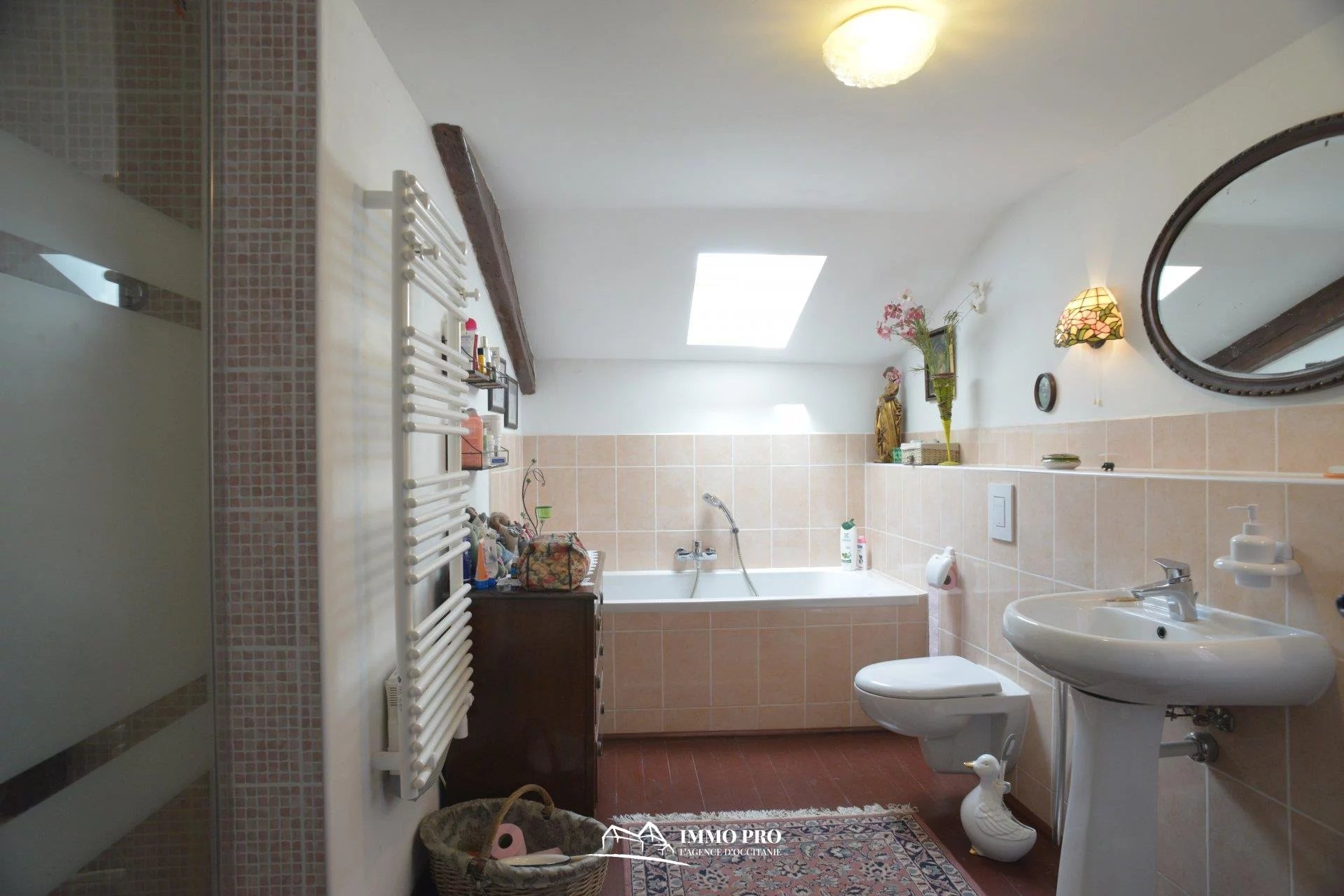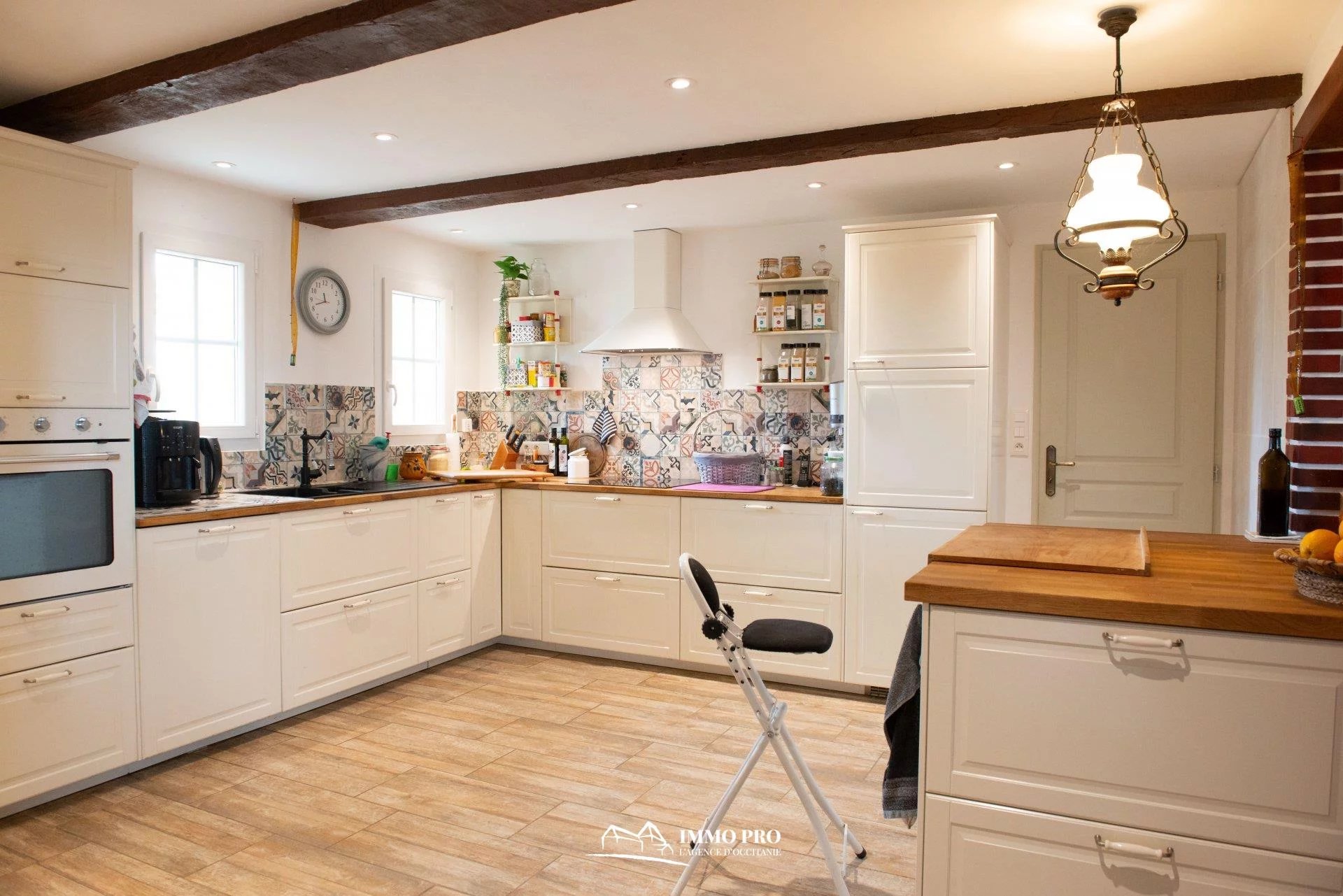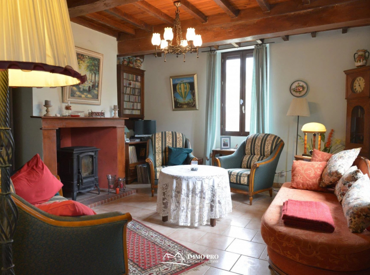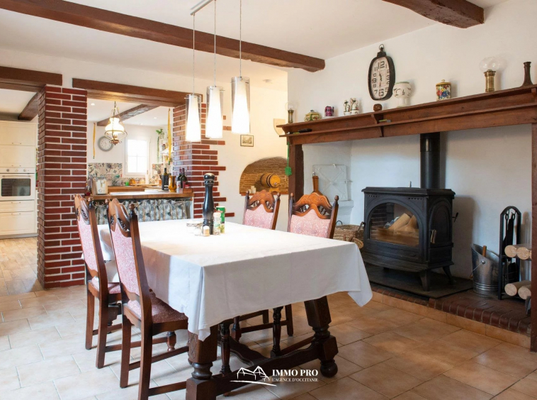 Double vitrage partout, 18 panneaux solaires pour l’auto-consommation, chauffe-eau thermodynamique, poêle à bois, fosse septique aux normes, portail électrique.