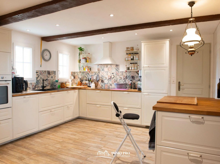 La MAISON (183m²), Au rez-de-chaussée: Cuisine équipée, salle à manger, salon, jardin d’hiver, arrière cuisine, buanderie et wc. A l’étage 3 chambres dont deux suites.