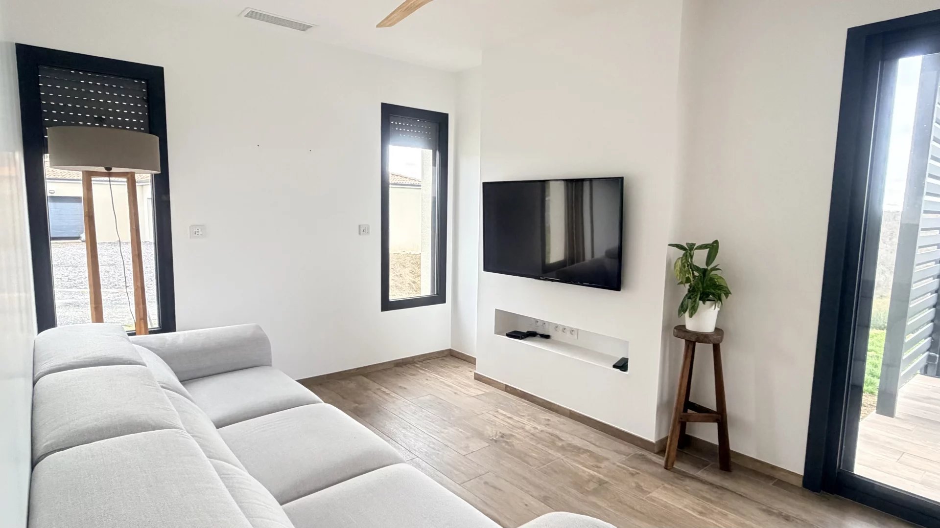 Domotique pour toutes les ouvertures et éclairage extérieur.
