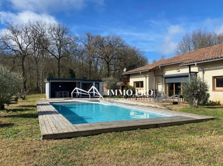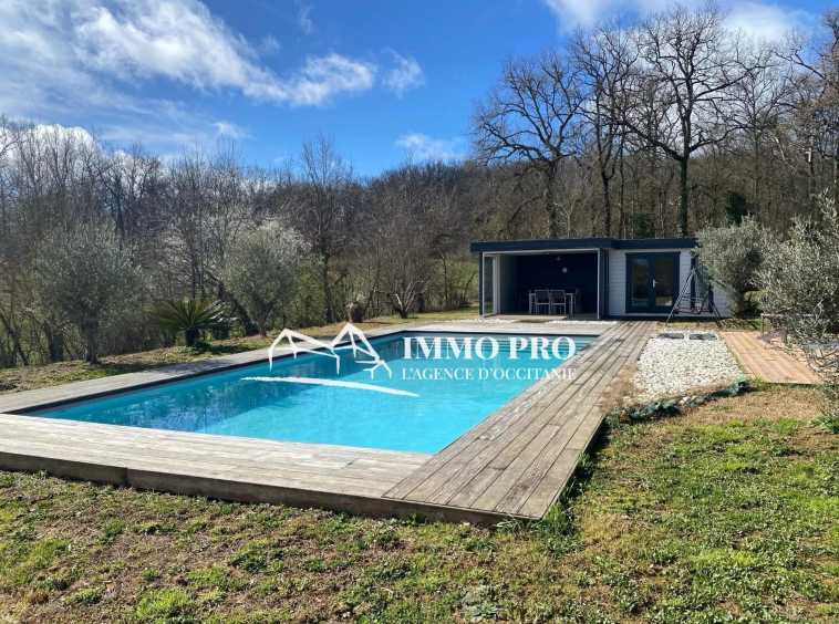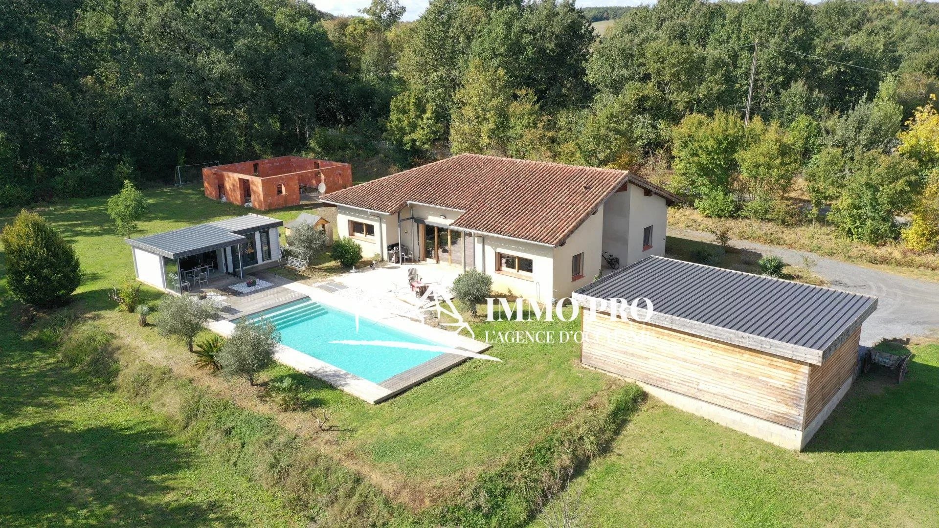 Piscine 11mx5m et son Pool house. Carport pour 3 véhicules et garage de 60m² à terminer.