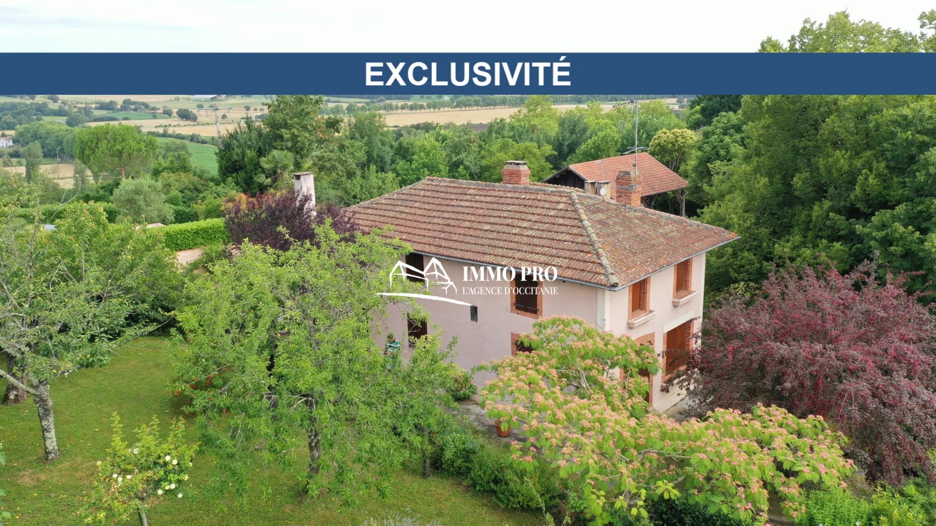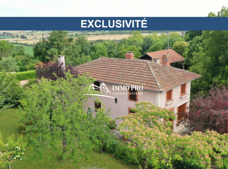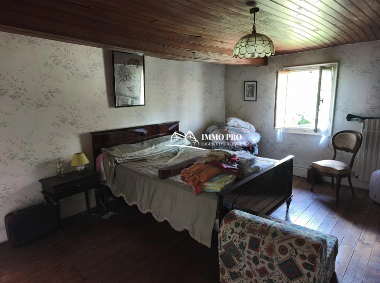 En EXCLUSIVITE, à 10mn des commodités, dans un charmant village, en position dominante et une très jolie vue, maison ancienne sur deux niveaux à rénover, avec un garage, sur un terrain joliment arboré d’environ 1.060m².