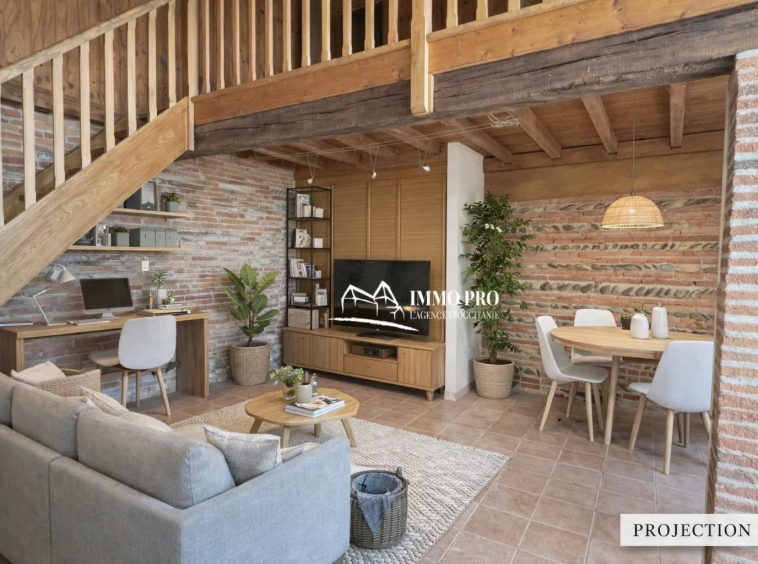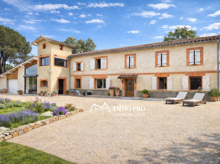 A 30mn de l’aéroport, 35mn de Toulouse et 5mn des commerces et écoles, Bel emplacement avec agréable et rare vue sur un lac pour cette propriété d’environ 175m² habitables et son pigeonnier sur un terrain d’environ 1HA.