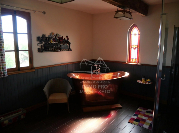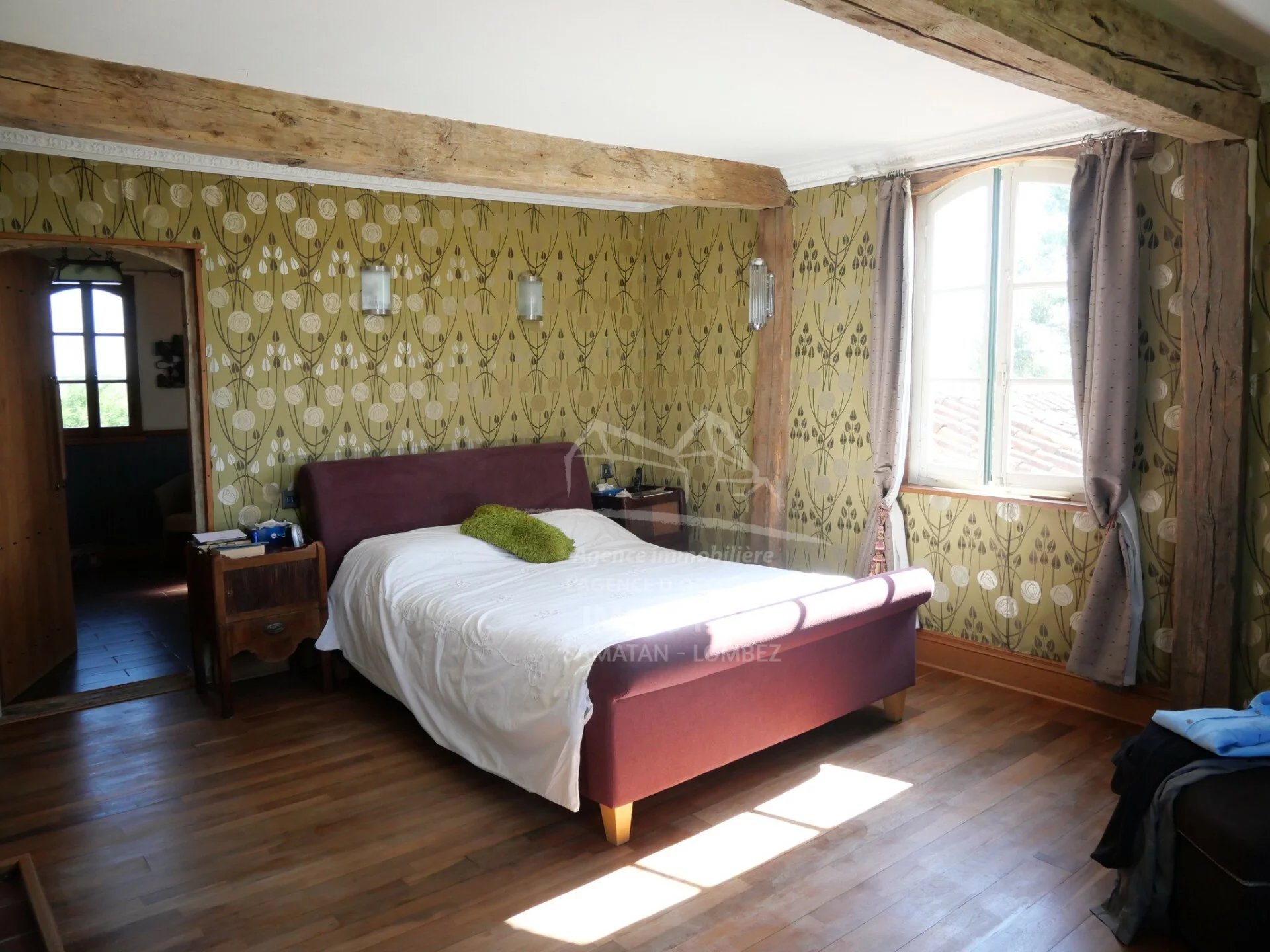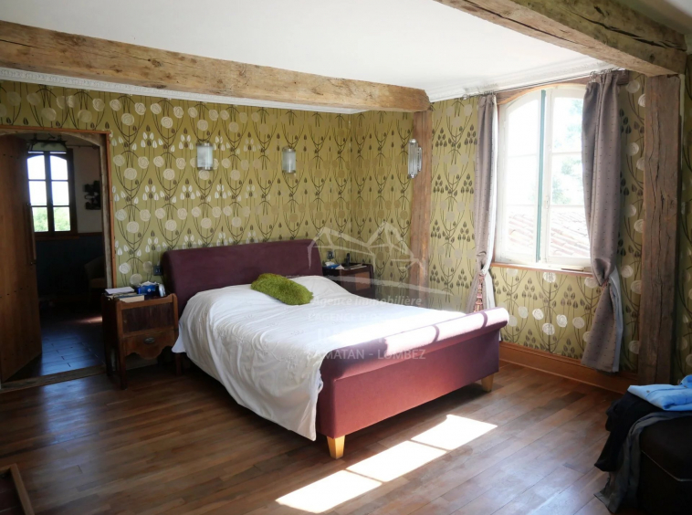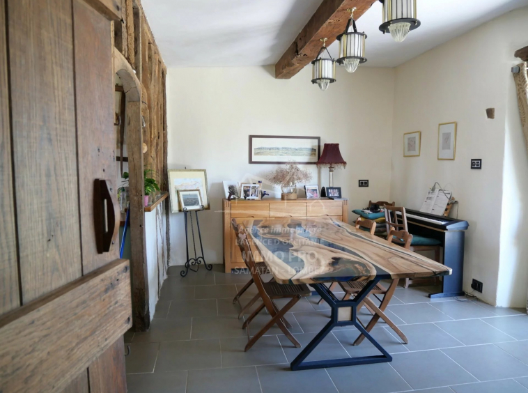 Au rez-de-chaussée : hall d’entrée, salon, cuisine équipée ouverte sur la salle à manger, cellier/buanderie et WC. A l’étage : Trois chambres dont une suite (chambre avec salle de bain) et une salle de bain avec WC. Les dépendances consistent en un grand atelier (75m²) ainsi qu’un grand hangar avec une SUBLIME CHARPENTE de près de 200m².