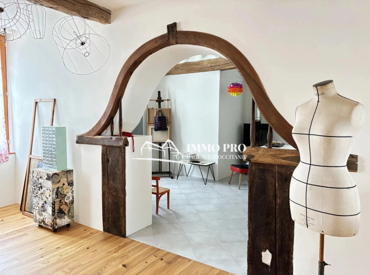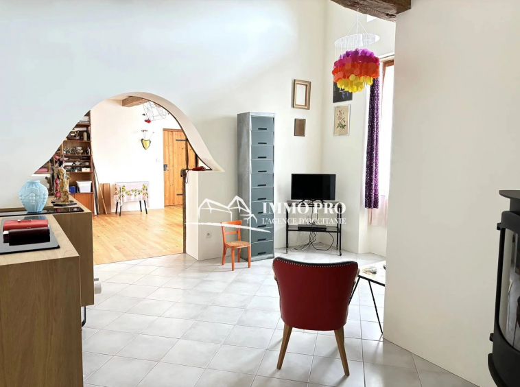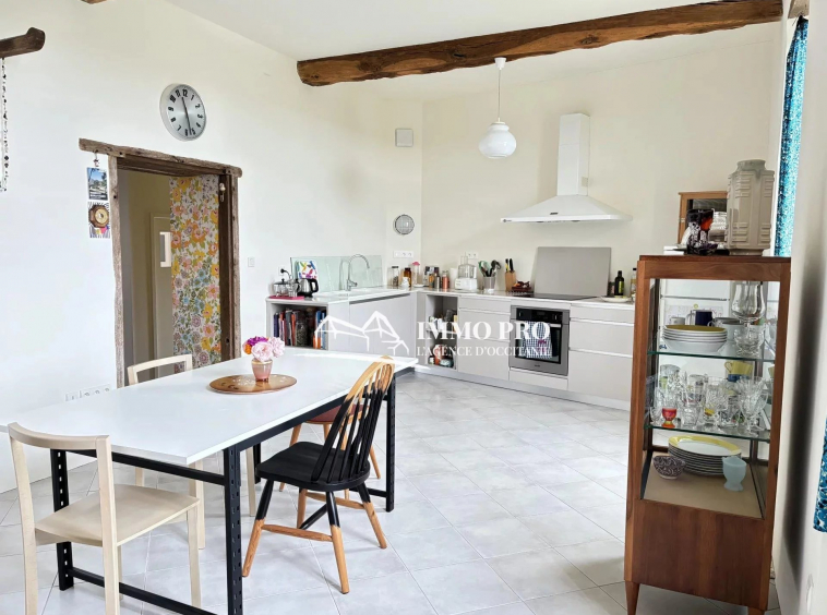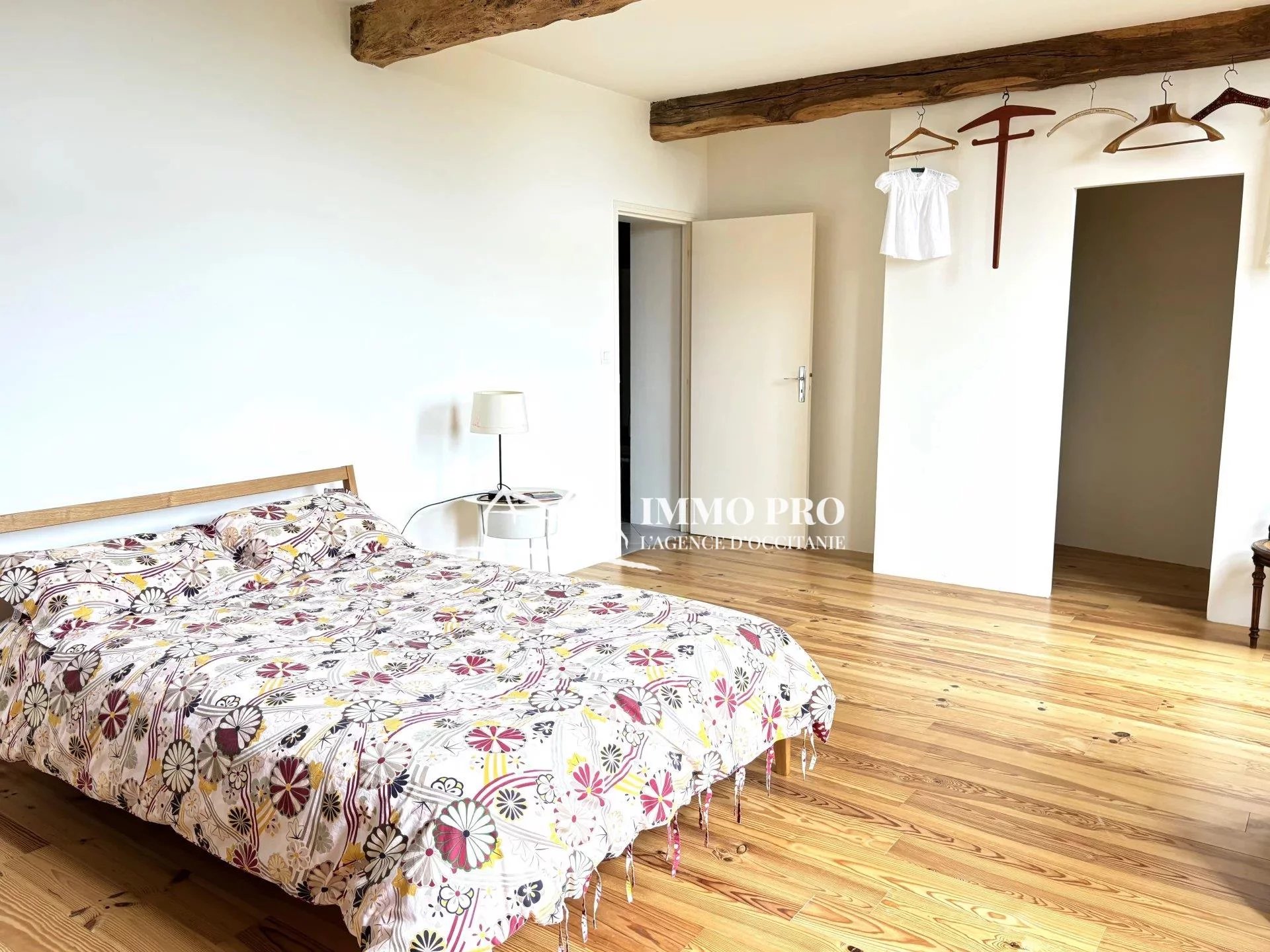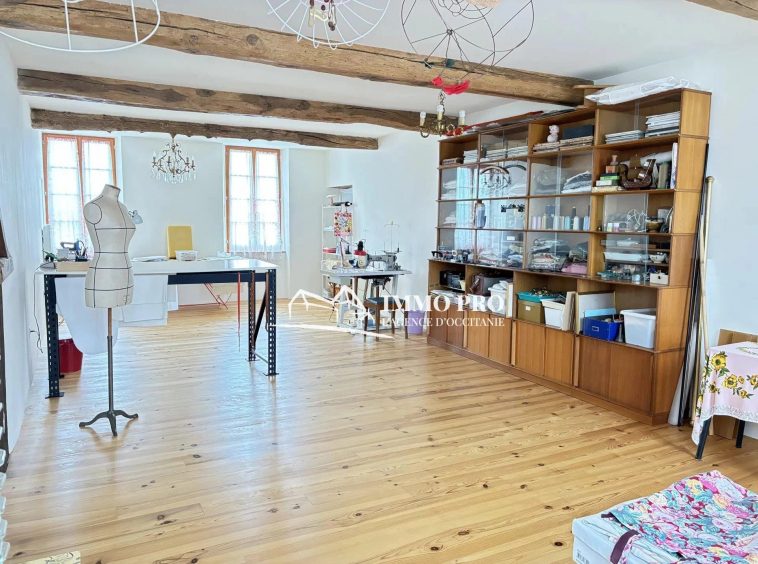 A 15mn SAMATAN, Maison ancienne d’environ 175m² habitables joliment rénovée sur un terrain d’environ 550m². Au rez-de-chaussée, entrée donnant sur le salon, cuisine séparée avec accès au jardin, cellier et toilettes; A l’étage, espace ouvert avec poêle à bois, belle chambre de 22m² avec dressing, atelier de 44m² pouvant être scindé en deux chambres, salle d’eau et toilettes.