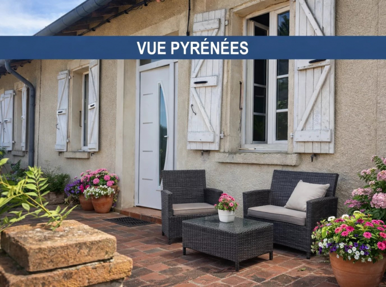 Sur l’axe Samatan/l’Isle-Jourdain, maison de plain-pied d’environ 97m² habitables sur un terrain de 815m² exposé Sud avec une vue imprenable sur les Pyrénées. Salon, cuisine séparée avec poêle à bois, 2 grandes chambres avec placards, bureau, salle d’eau et toilettes. Une dépendance de 26m² attenante avec salle d’eau est à rénover. Un garage et Local extérieur complètent ce bien.