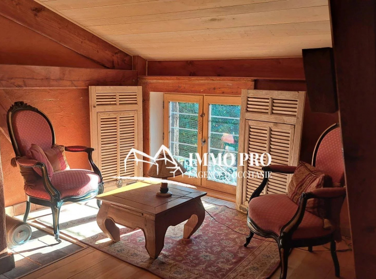 On the ground floor, kitchen opening onto the dining room and living room with fireplace, summer lounge, 2 bedrooms, bathroom and toilet. Upstairs, 3 bedrooms, office, 2 bathrooms and toilet.