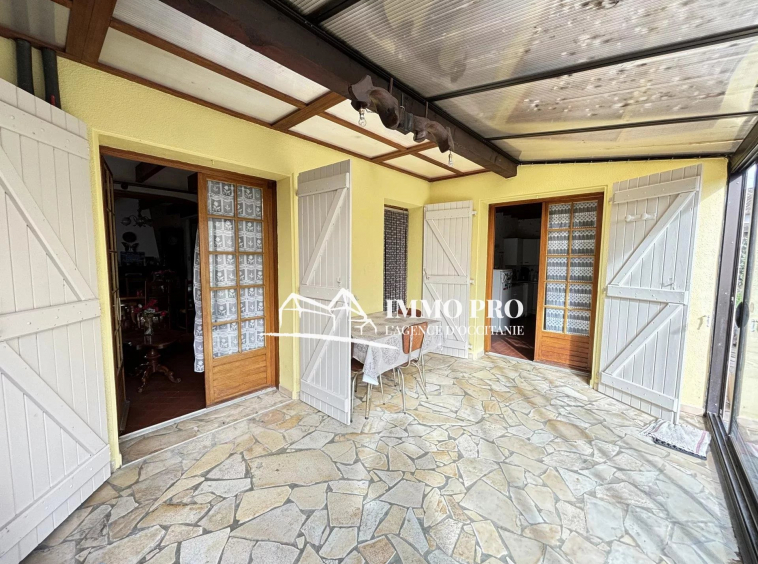 2mn des commodités et AU CALME, Maison d’environ 77m² habitables avec entrée, salon avec insert, cuisine séparée, une chambre, salle d’eau avec douche à l’italienne, et toilettes. Véranda de 17m².
