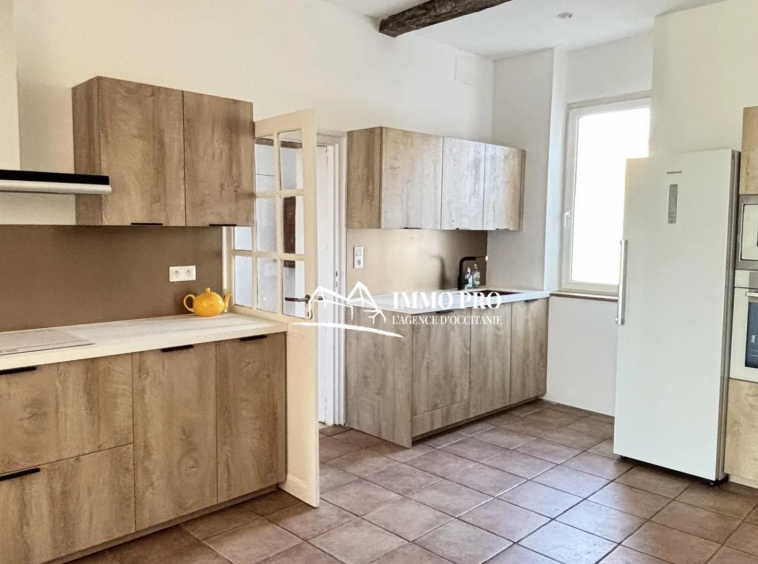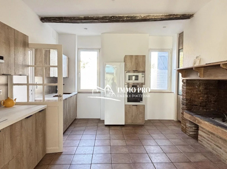 Cœur de bourg – Maison avec CACHET de 149m² habitables. Au rez-de-chaussée, entrée avec placards, buanderie et toilettes; cuisine haut de gamme et sa cheminée authentique, salon avec accès sur une belle véranda de 15m² exposée Sud qui donne sur une DOUBLE TERRASSE avec cuisine d’été; Au 1er étage, espace bureau sur la mezzanine, 2 grandes chambres de 15 et 20m² avec dressing, salle de bains et toilettes. Au 2ème niveau, un dégagement avec placards et 2 chambres. Climatisation réversible dans toutes les pièces. Une dépendance non-attenante de 26m² complète ce charmant bien.