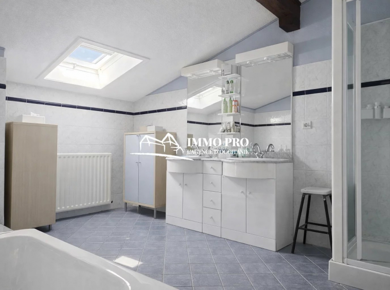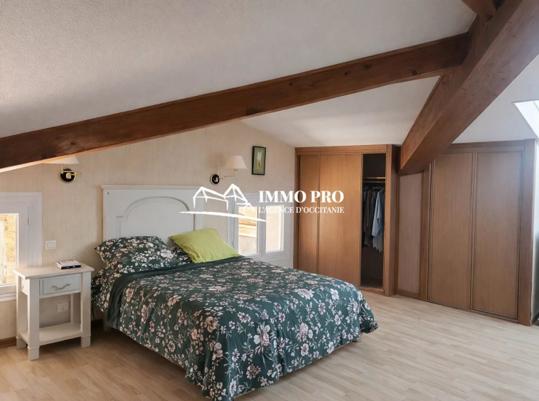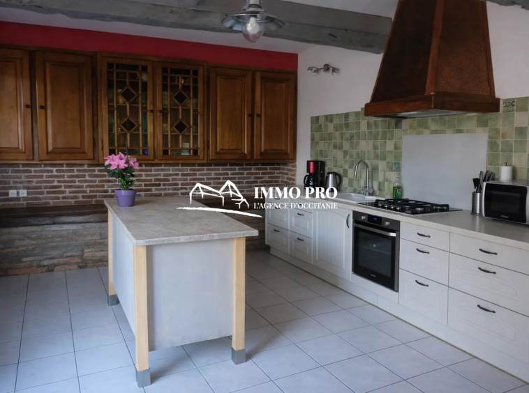 Au rez-de-chaussée, entrée, cuisine équipée sur spacieuse terrasse abritée et sa cuisine d’été, grande arrière-cuisine avec espace buanderie et chaufferie, séjour et sa cheminée ouverte, salon (bureau) avec insert, suite (chambre et salle d’eau privative); A l’étage, 4 chambres, spacieuse salle de bain et toilettes.