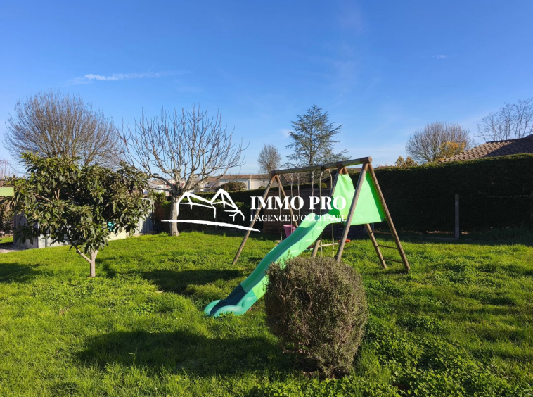 Très proche des commodités à pied, maison de plain-pied sur vide sanitaire d’environ 80m² habitables avec garage attenant sur un terrain arboré et clos de 760m² avec abri de jardin.