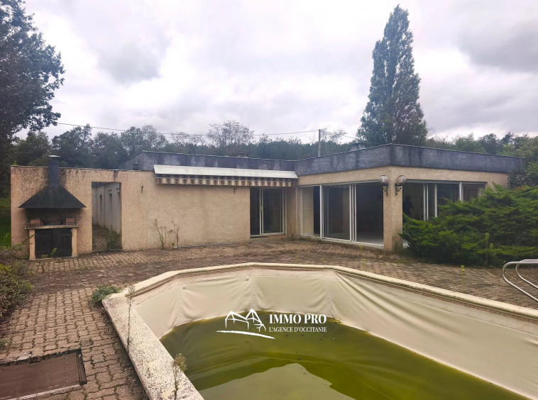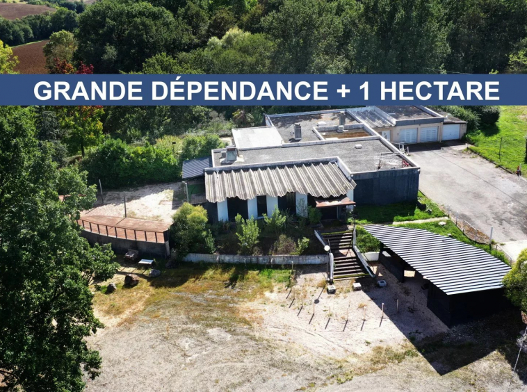 Maison de 1976 d’environ 165m² habitables avec piscine, double garage, atelier et GRANDE DEPENDANCE ATTENANTE d’environ 250m², le tout sur un terrain d’1 Hectare.