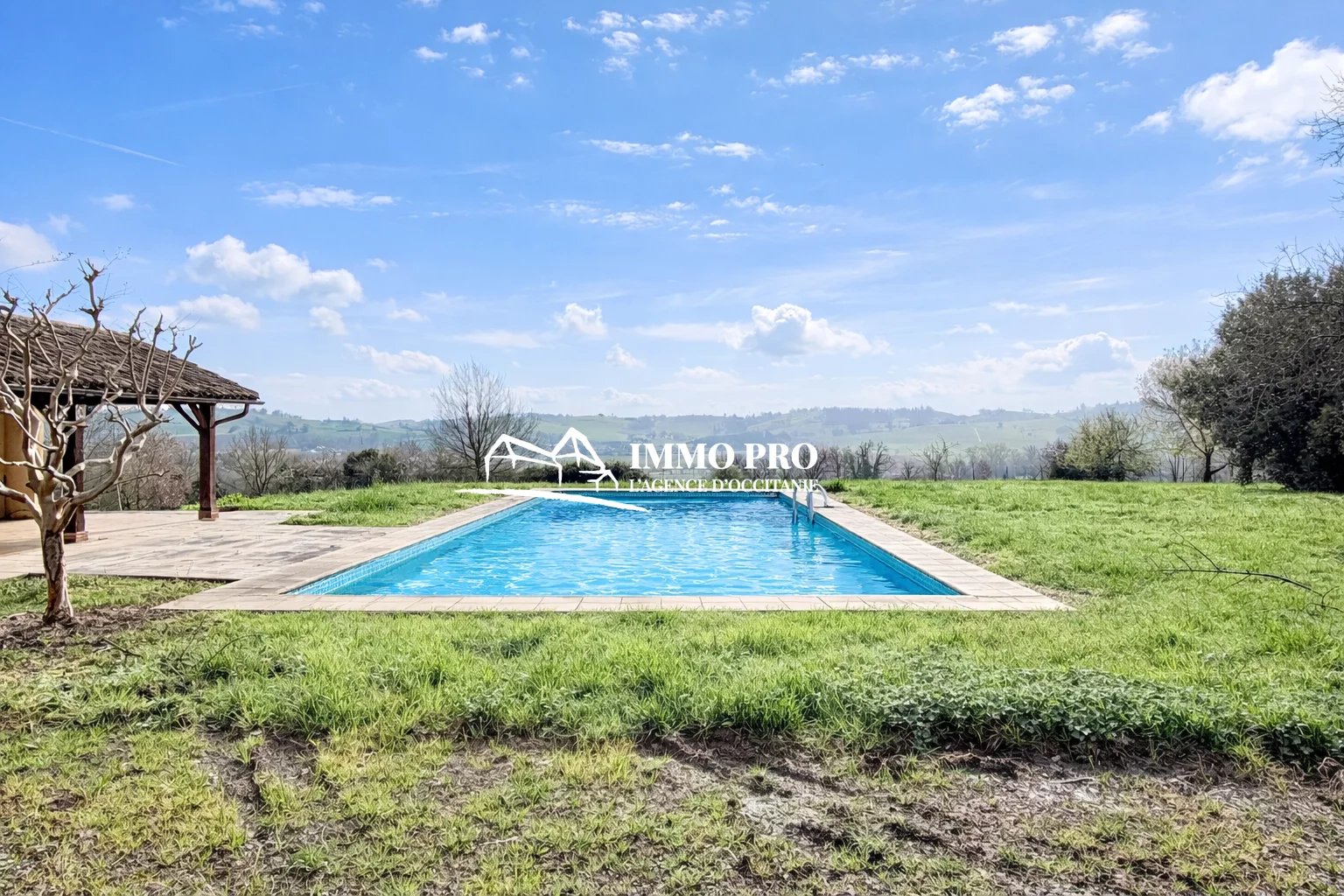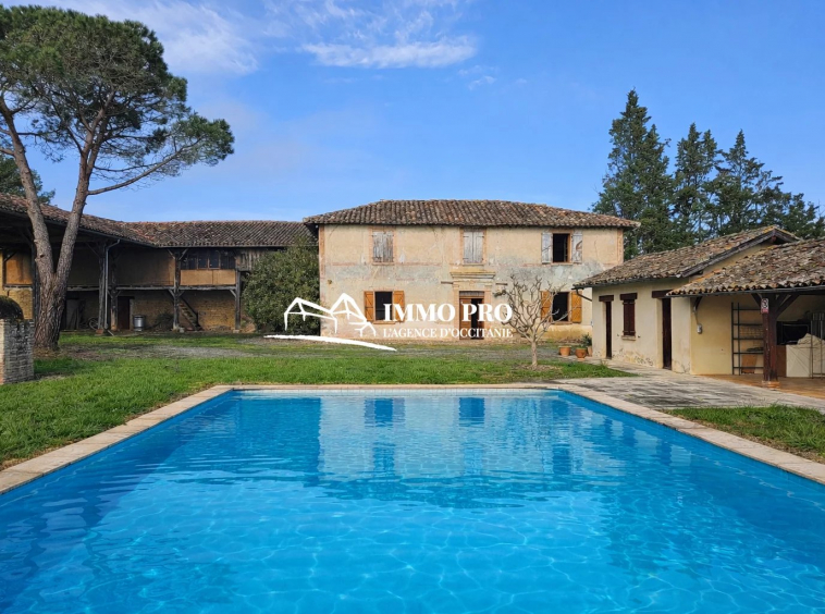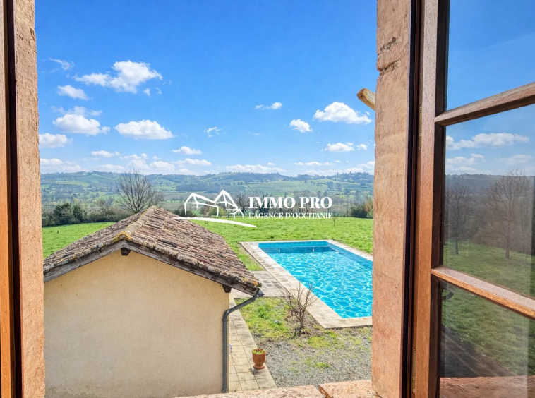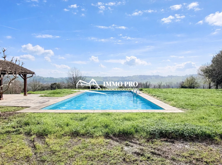 EXCLUSIVITE A 5mn des commodités et En position dominante, Maison de village exposée Est/Sud-Est sur 9.200m² de terrain plat avec mare, piscine au chlore, court de tennis, et dépendances.