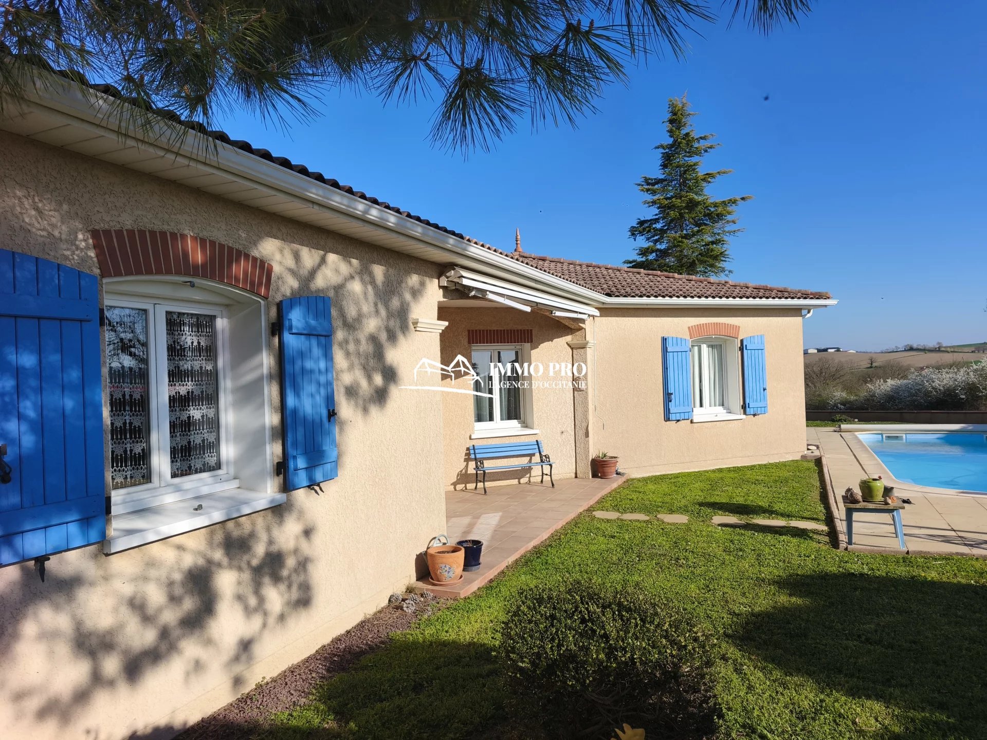 A quelques pas des commodités, au calme, sans vis-à-vis et vue dégagée sur les Pyrénées, villa avec Piscine au sel de 2005 sur un terrain clos 857m².