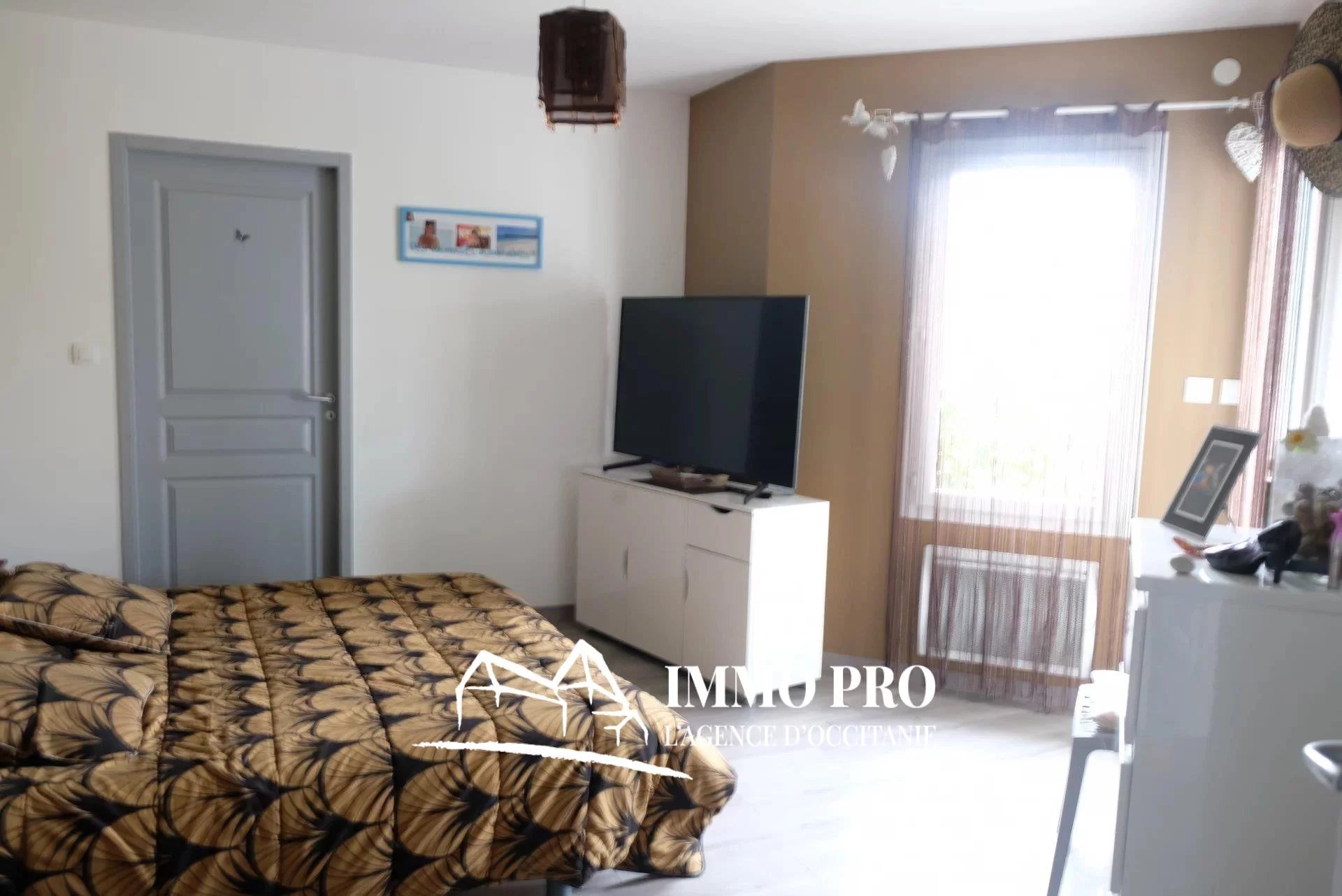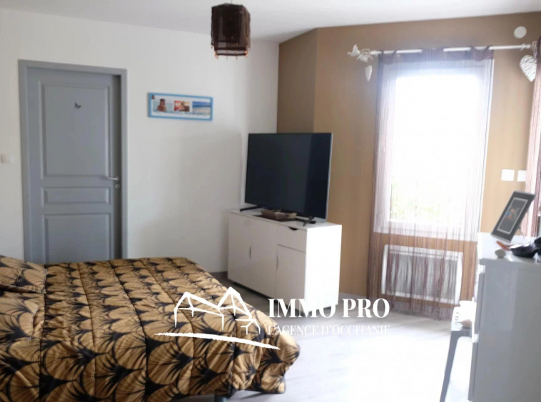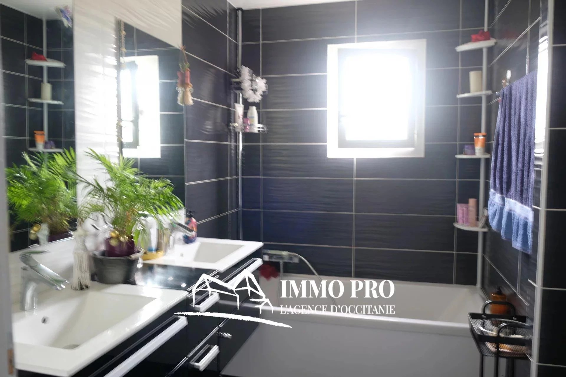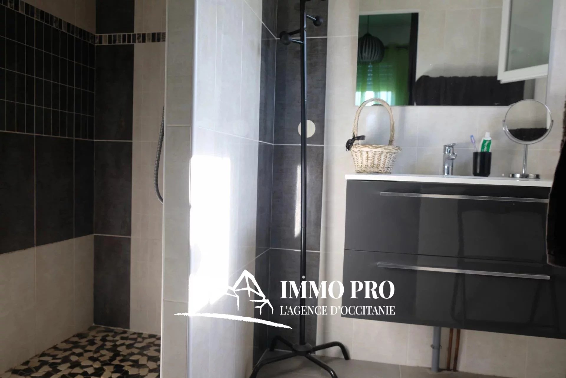 Spacieuse et lumineuse pièce de vie avec cuisine équipée ouverte sur le séjour donnant sur une terrasse abritée. 3 chambres, dont une suite avec dressing et salle d’eau, toilettes indépendantes, et salle de bain avec toilettes.