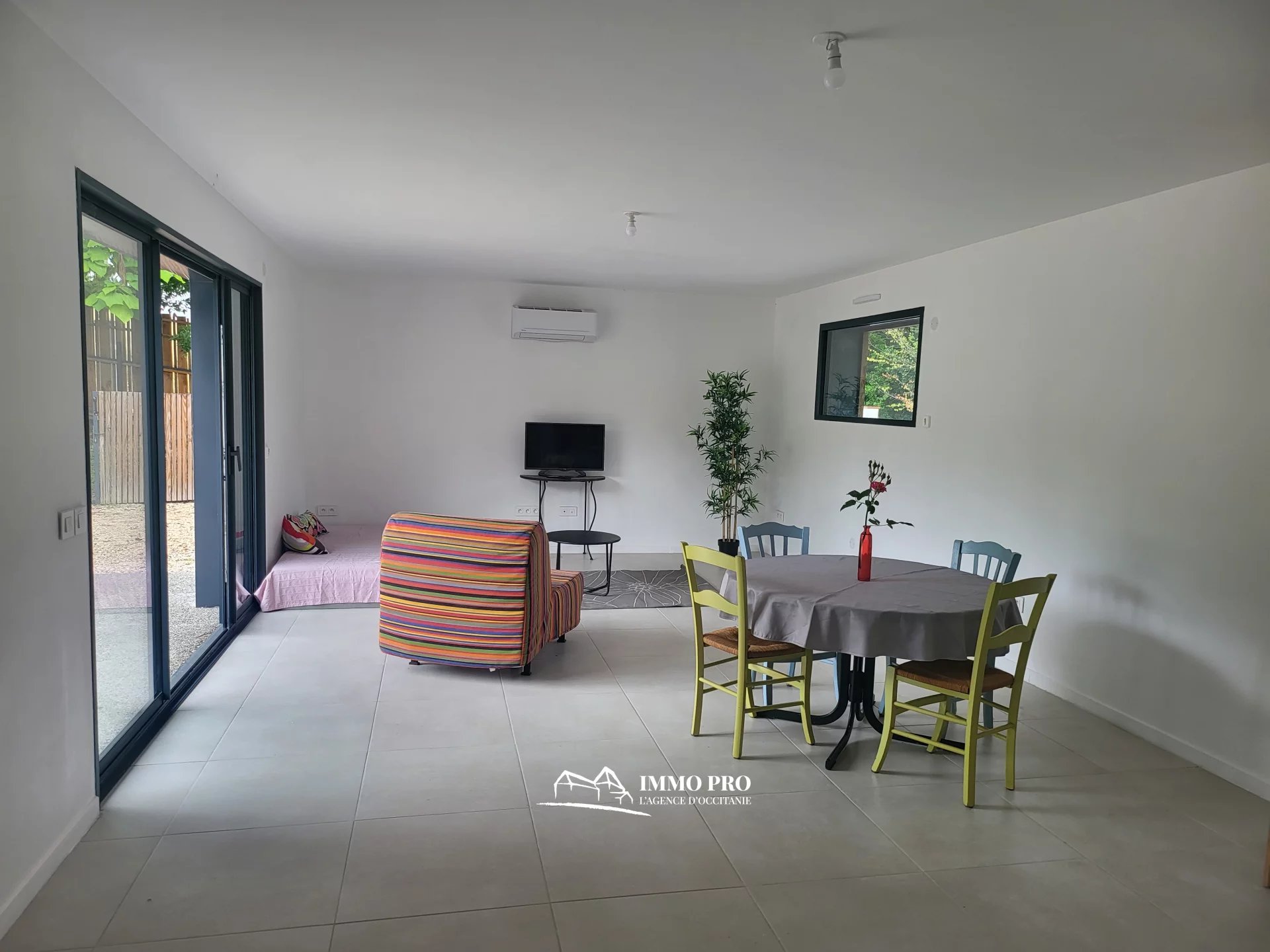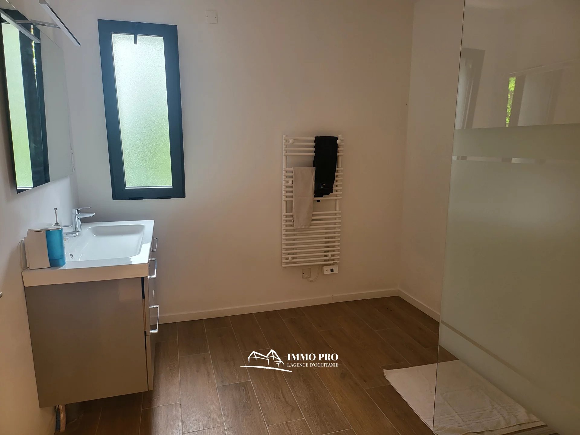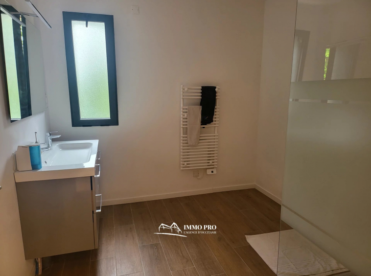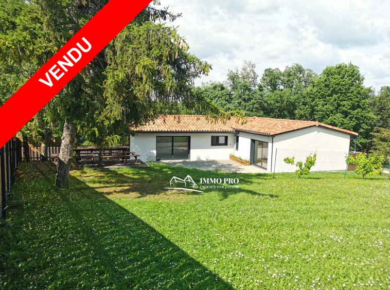 A 15mn de L’Isle Jourdain et 40mn de BLAGNAC, CHARMANTE Villa de 103,50m² et son ABRI VOITURES de 20m². Cuisine ouverte sur séjour de 40m², cellier, 3 chambres dont une suite (Chambre avec salle d’eau et toilettes), grande salle d’eau de 7,60m² et toilettes indépendants. Jolie TERRASSE EXPOSEE au SUD accessible par la porte-fenêtre à galandages de la pièce de vie – ouverture totale vers l’extérieur. AUCUN VIS A VIS! BEAU TERRAIN ARBORE d’environ 2.000m², carré potager et récupérateur d’eau. Climatisation réversible et convecteurs électriques dans les chambres. Huisseries aluminium double vitrage. Très bon DPE en B. ENVIRONNEMENT TRES PAISIBLE!